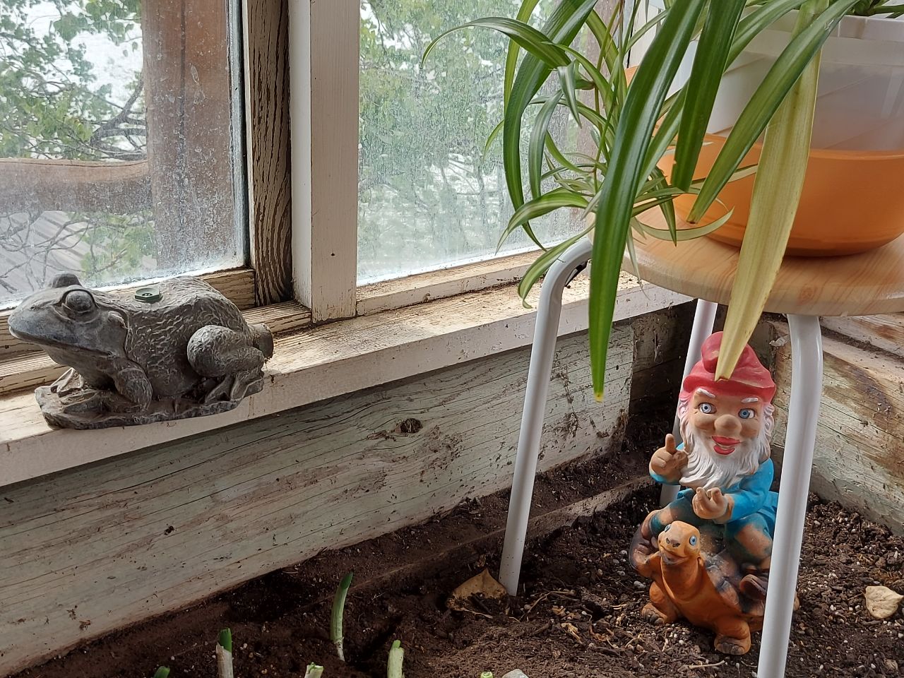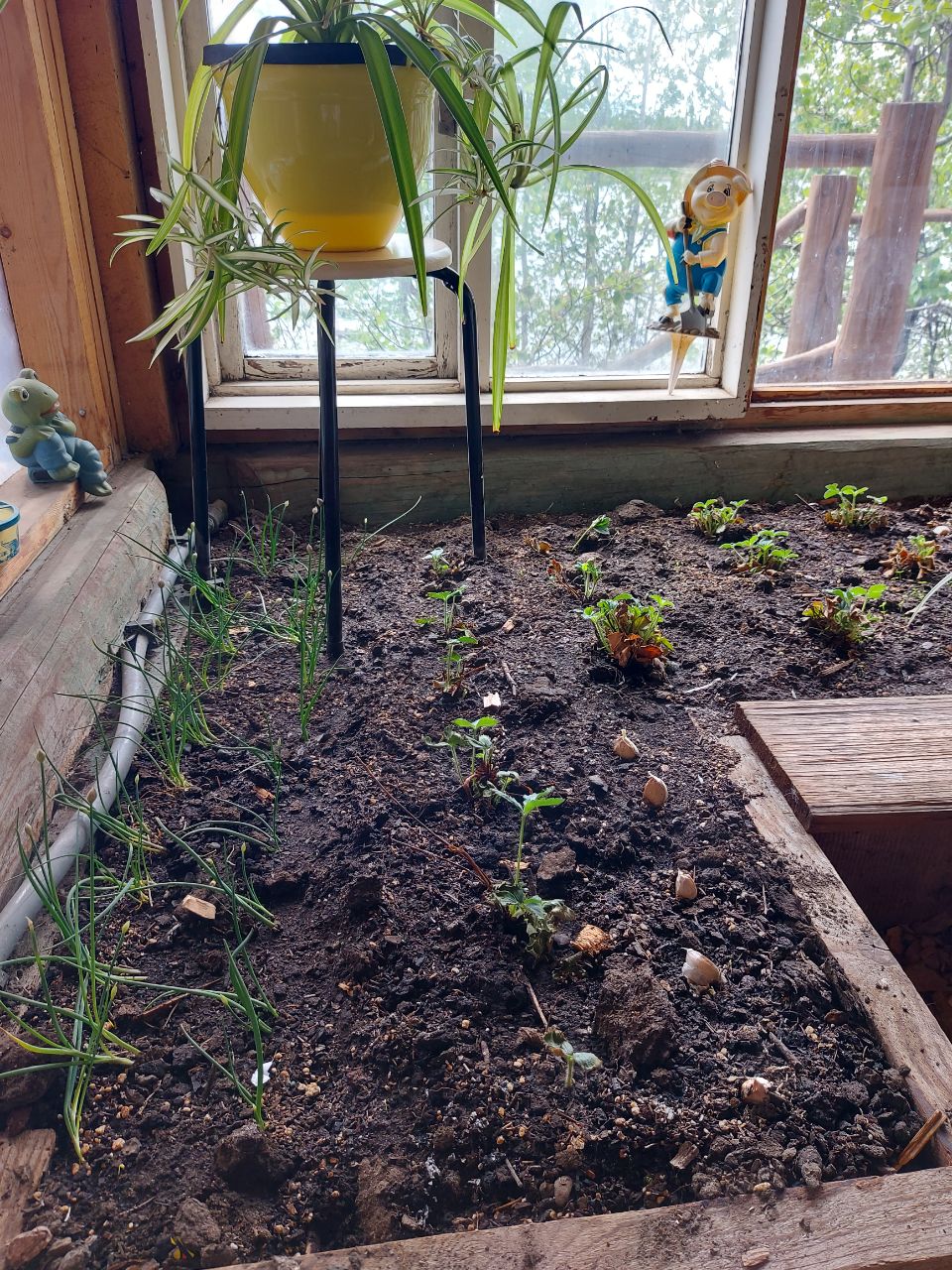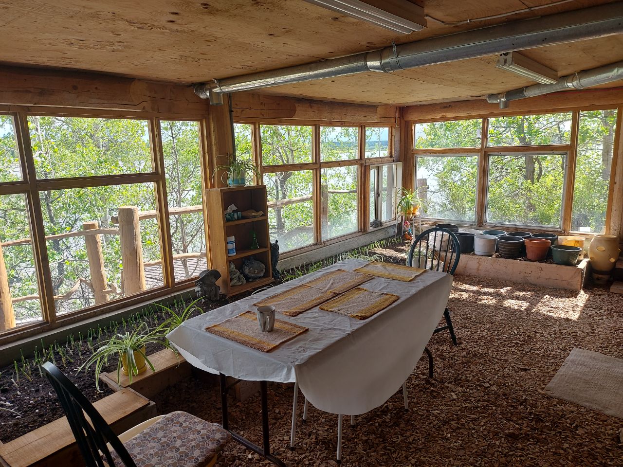 我們的烹調方式與西方人不同,我們要炒菜,炒菜會冒油鹽,油煙會污染房間,所以,我們把連接主樓的溫室改造成了廚房。 初期,溫室只是一個堆放雜物的雜物間,堆滿了亂七八糟的東西,後來,74歲的小姑娘給我們送來蔥和草莓苗,沒地方栽,於是就想到溫室,湖邊的溫室有點遠,不方便管理,於是就在連接主樓的溫室角落裡把雜物挪了挪,栽下了蔥和草莓苗,後來我乾脆把咖啡機搬進去煮咖啡喝,再後來,考慮到來人吃飯問題,於是我們決定把溫室改造成廚房, 經過一個星期的折騰,我又從商店買來好多大蔥栽植上,今日萬事俱備,開張啦!