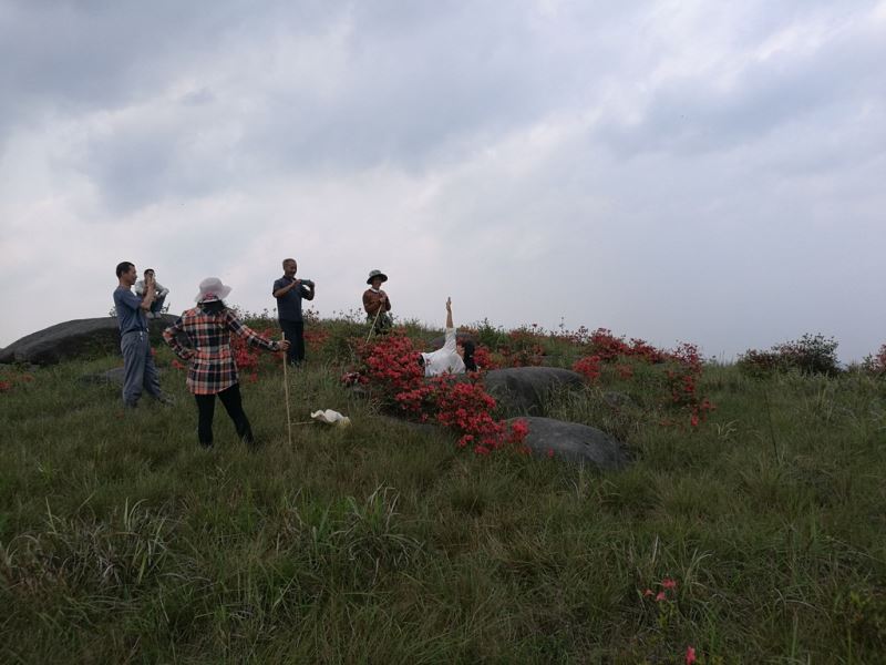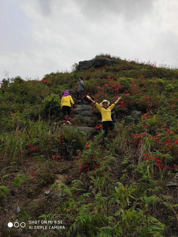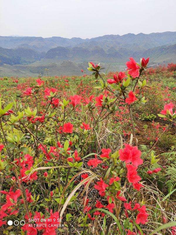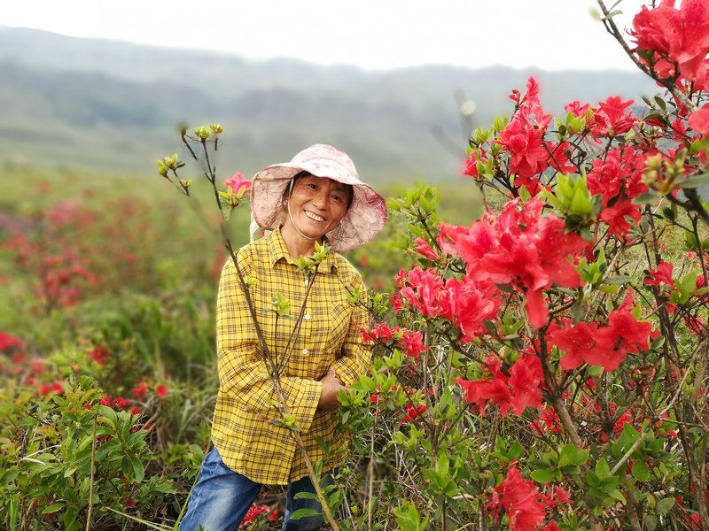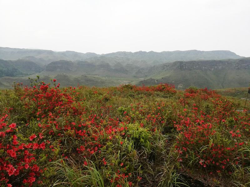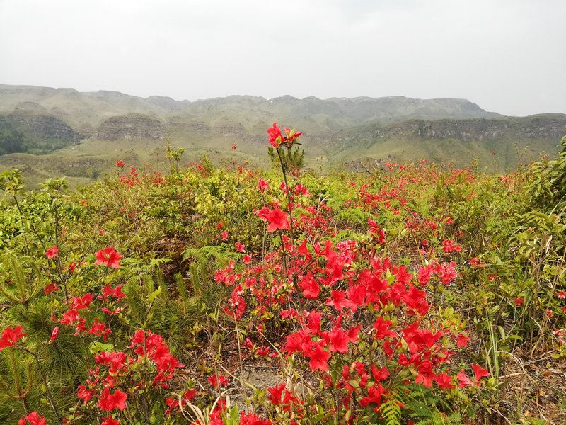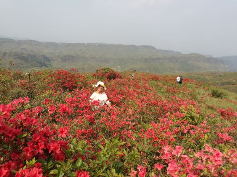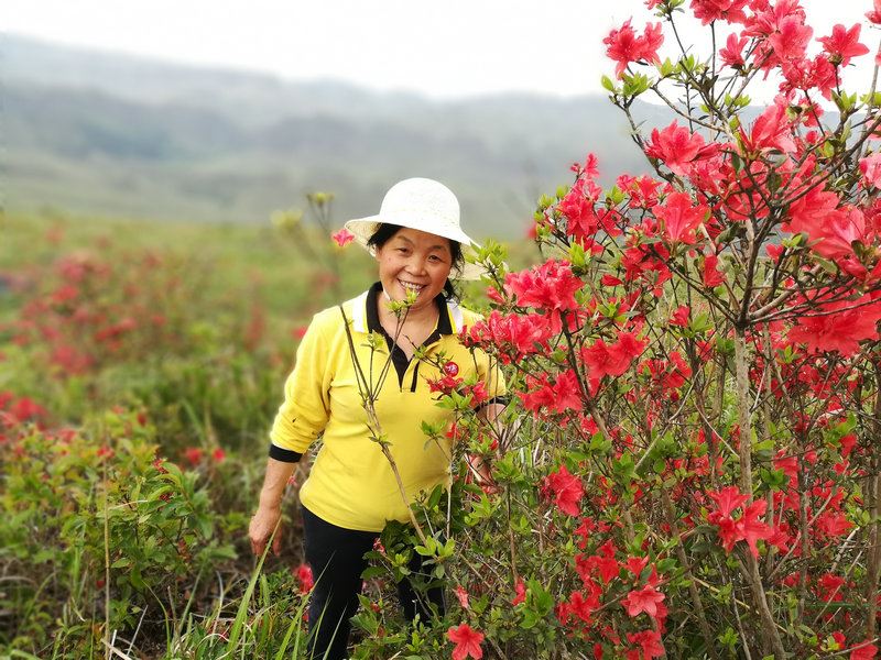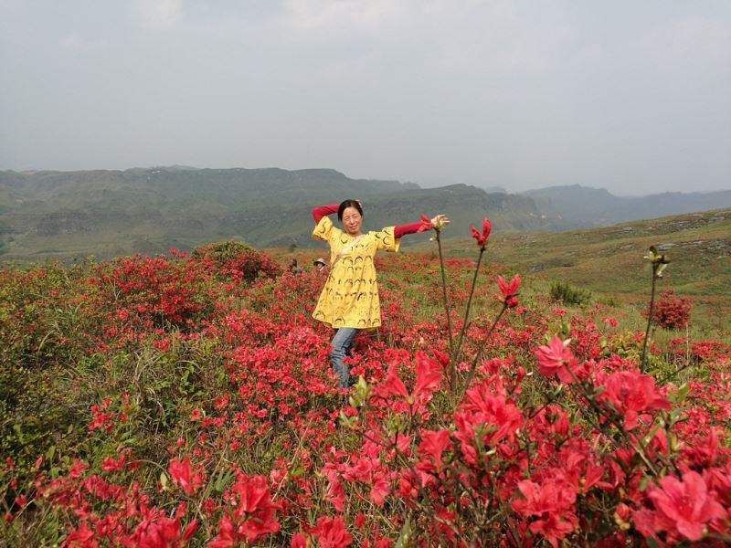 一看漫山遍野盛開的杜鵑花,映紅了山巒山坡山崗山地,徜徉在花海中,人自然靈氣大升,俗氣漸消。