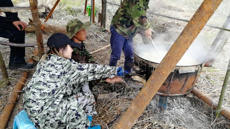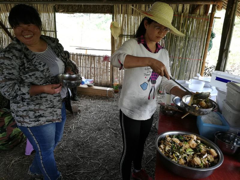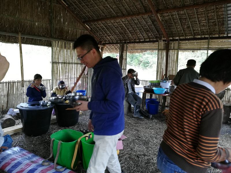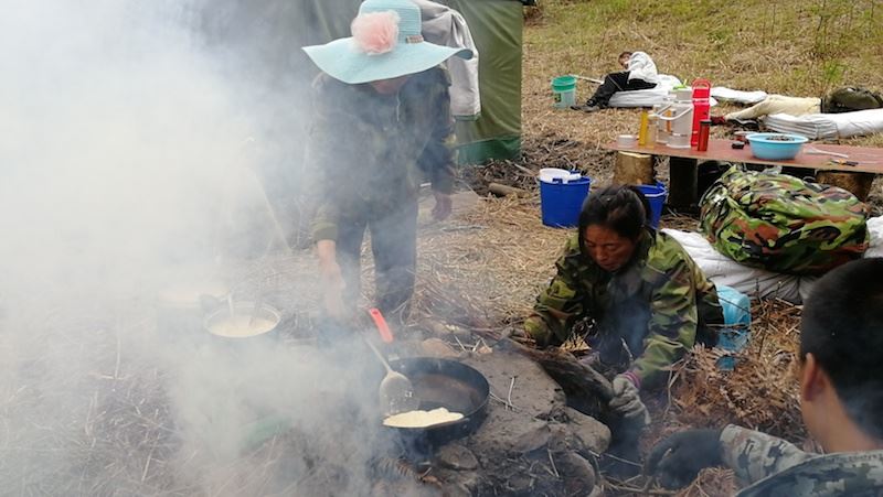 沒有飯桌,沒有凳子椅子,席地而坐,或坐在木墩上,幾個人圍在一起吃,或單獨站著吃,飯菜簡單,沒有豐富的菜餚,只有餅子、饅頭、餃子,面湯,清風吹著,溪流叮咚著,青煙冒著,說著笑著,肚子填飽了,姑娘小夥子們開心了,想起來,這種吃飯的方式大概是人生中最值得回憶的片段,反正我覺得這比在五星級餐廳吃滿漢全席更值得令人回味。 你說呢?