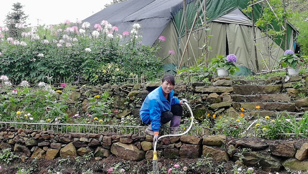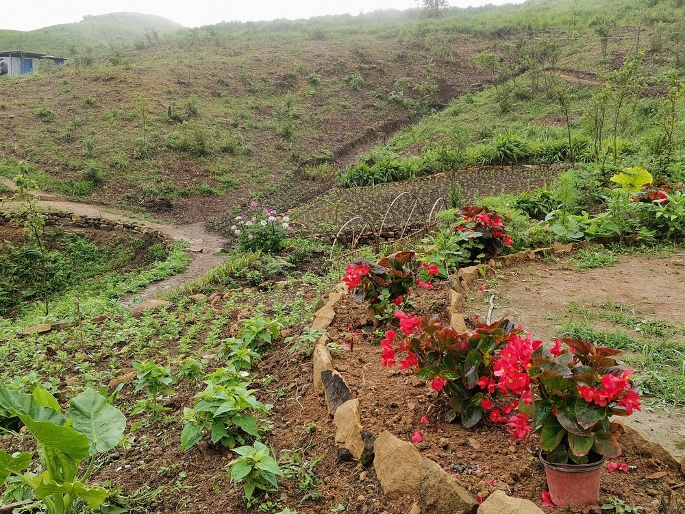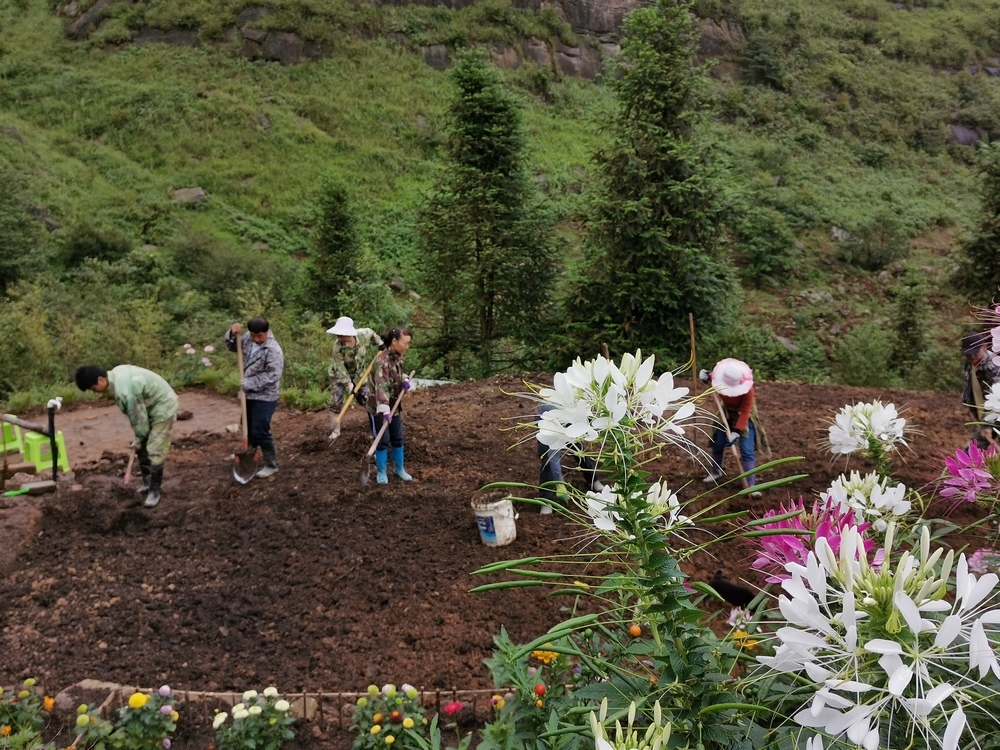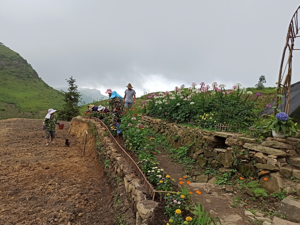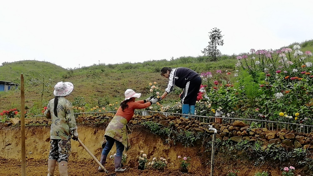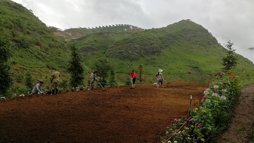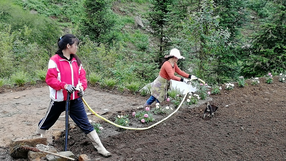 經過一年多的努力,大家已共同種植上萬棵果樹以及多種類別的花卉。 據我所知今年種的樹有:櫻花、刺梨、桂花、香椿,三角梅、柳杉...... 花卉主要是分佈在凈心谷和豐澤園兩處駐地,目前豐澤園內有:月季、五色梅、菊花、黃金菊、步步高、醉蝶花、炮仗花、四季海棠、滿天星、繡球花、天竺葵...... 完成這些需要付出多少汗水與心血,這其中究竟有多少工作量,常人難以想像得到。 而這群勤勞質樸不計較個人利益得失的禪院草,願為人類創建新生活模式,願做一名新時代的開拓者,願在這裡一點點地綠化,一步步地成長。