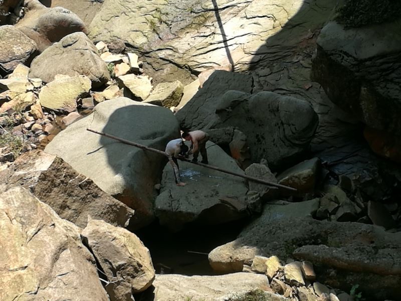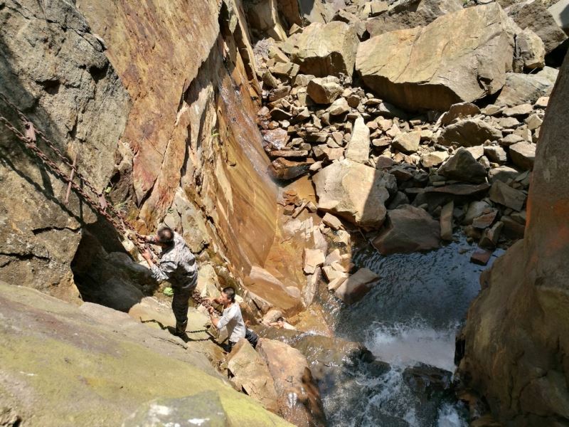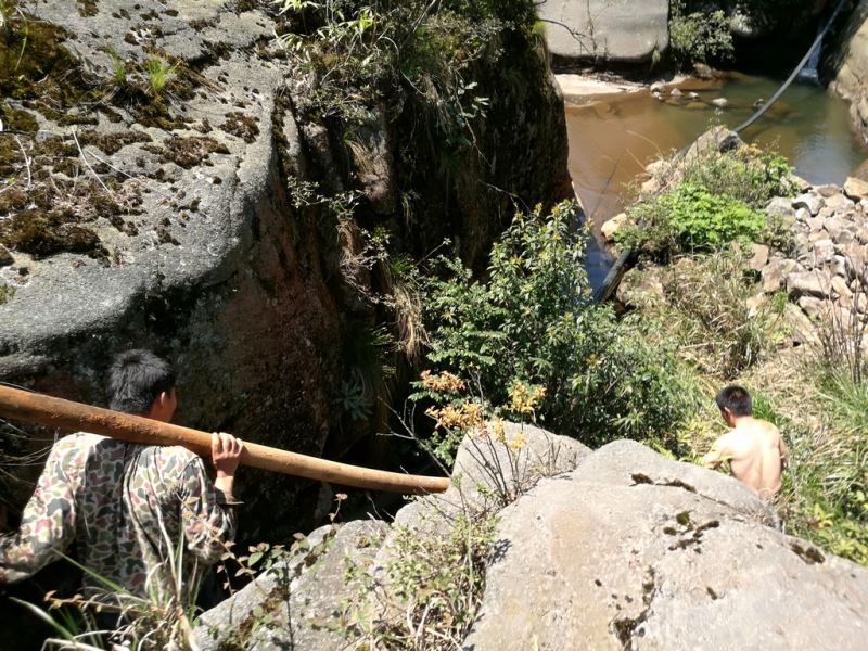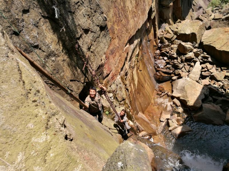以佛義為首的幾位帥哥們,你們英姿矯健,體魄健壯,敏捷異常,為了家園親人們,為了節約每一分錢,我理解你們的那份愛和真摯的情,可你們也太憨厚老實了,為了拿到兩根廢棄生鏽的鐵管,順著懸崖峭壁爬下攀上,冒的風險太大太大了,看得我心驚膽顫,直冒冷汗。 當年,為了大家的安全,我們撤出了三分院,可你們冒如此大的風險,讓人有淒涼之感,若一旦出事,後果不堪設想。