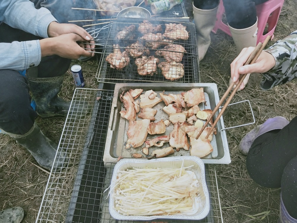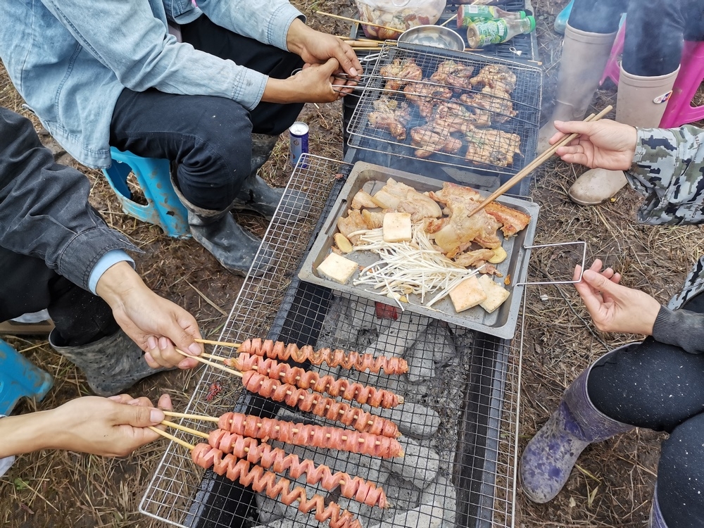 節日里的美食是豐盛的。 中秋當天我們吃了烤鴨和蛋糕,是慈恩仙女一大清早出去採購的; 第二天集體在豐澤園吃燒烤,特意選在一片遠離花卉果樹的地方支爐子,是怕小生命們會被熏得受傷; 第三天我們在家裡吃麻辣燙,廚仙們從上午就開始準備食材了。 另外還有各式各樣的零食水果,恆德總助在群裡開玩笑說道:“又到了吃貨們的黃金時刻! ”哈哈哈~