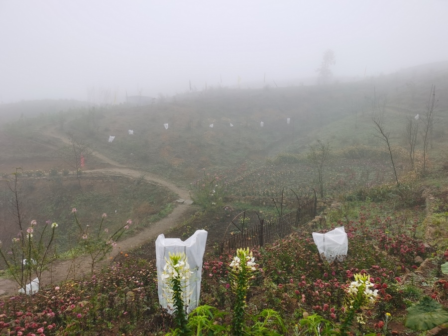 走進世外仙源,一起來看大家最近在做什麼~此組照片較多,我將分樓層為大家解說報導。 一、臨近入冬,親人們為山上部分怕凍的花卉和果樹套上了自製的塑膠“白帽子”,這樣小生命們也能溫暖地過冬了,敬畏生命不是說說而已,我們落實在了日常工作中。 放眼望去,那星星點點的白色散落在山間,更添一道風景。