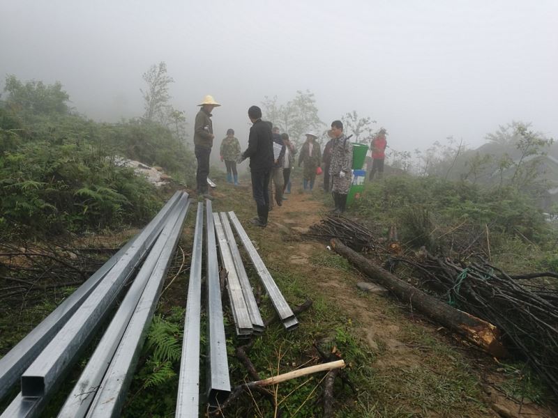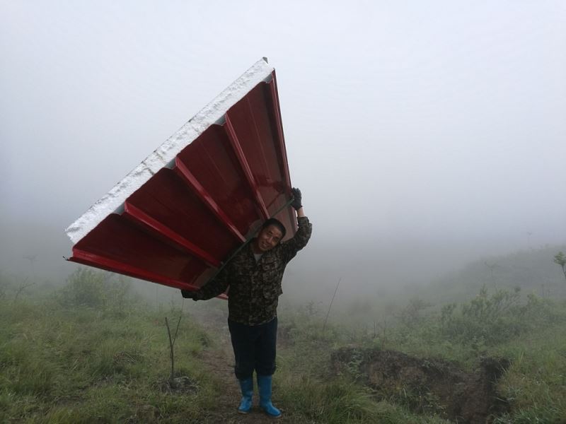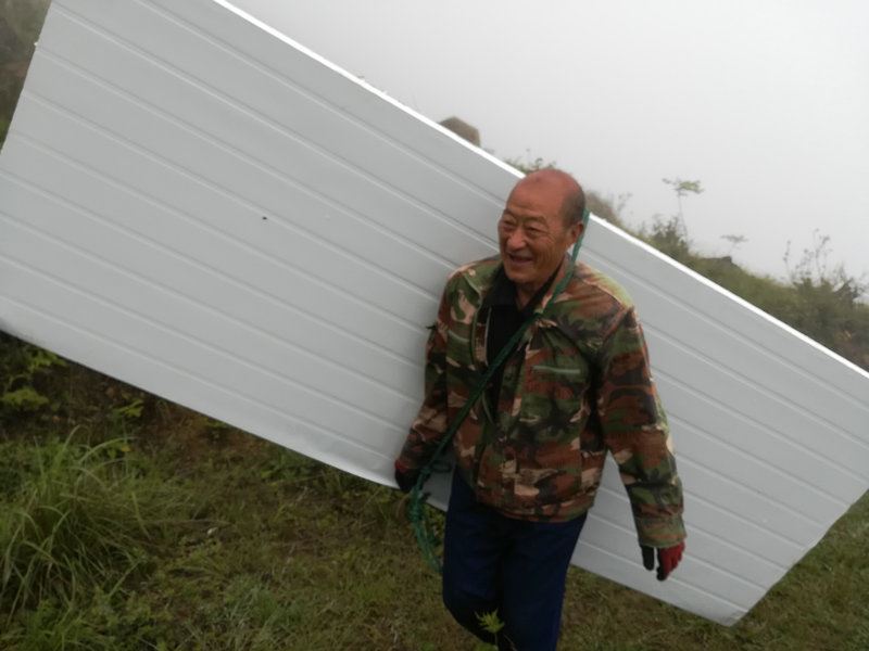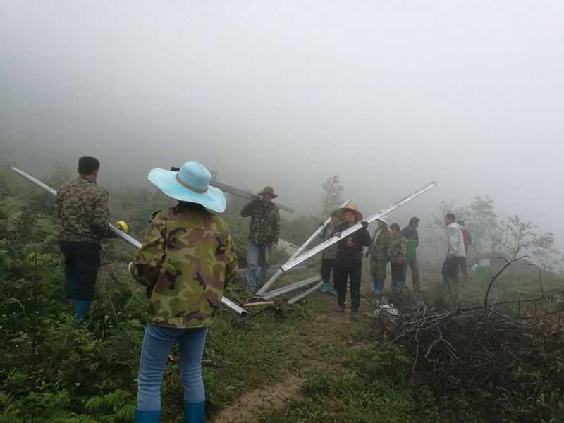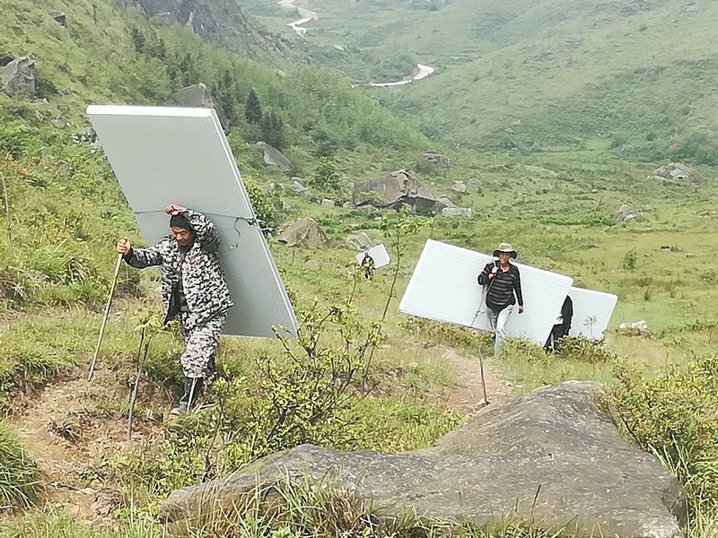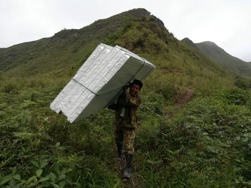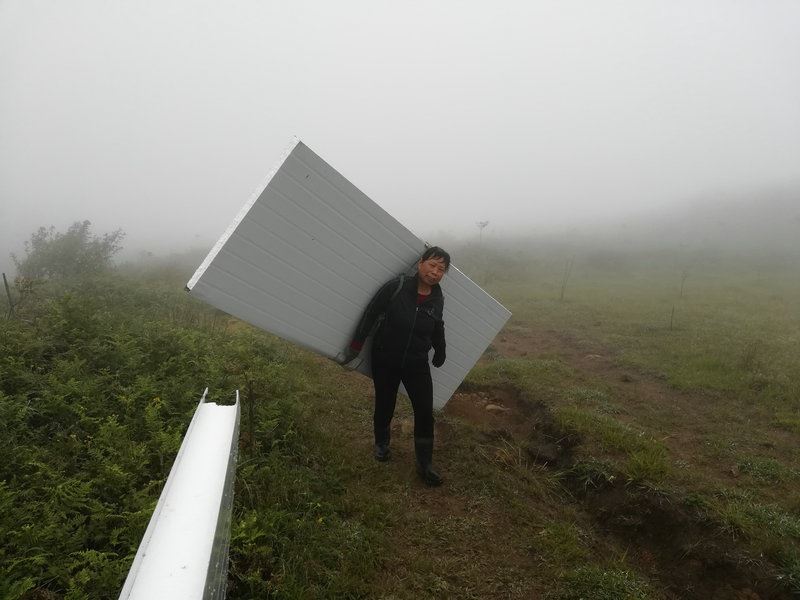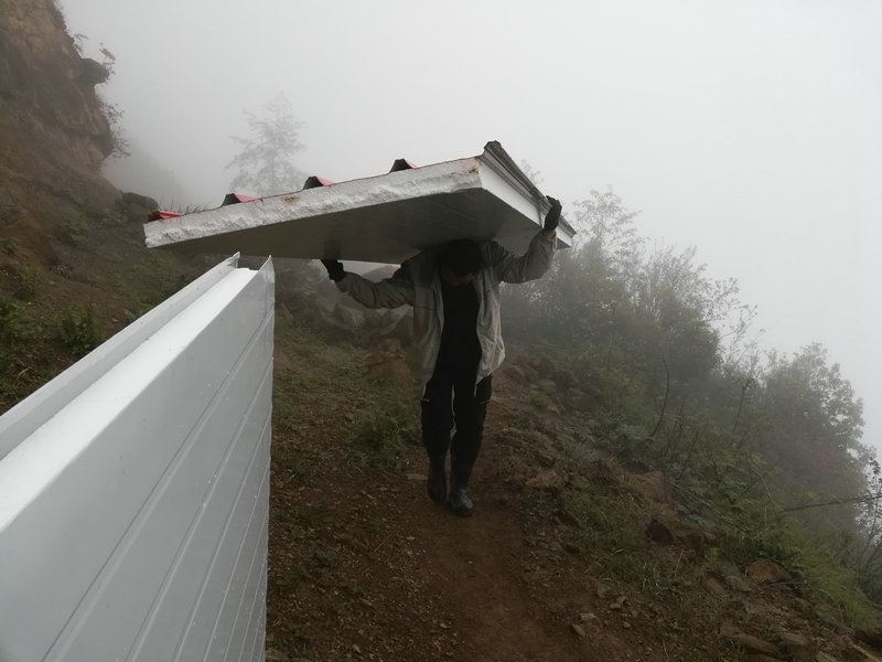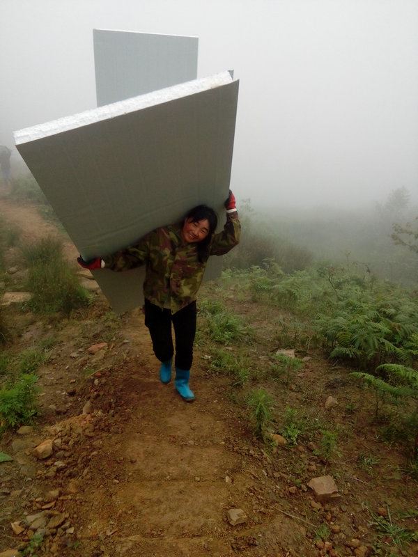 世外桃源基地要建造洗澡間,材料備好了,需要人工搬運進去。
