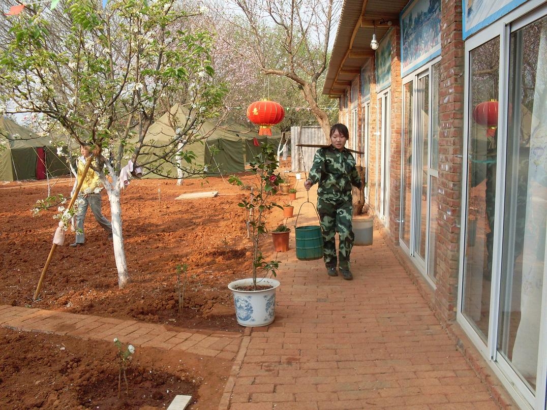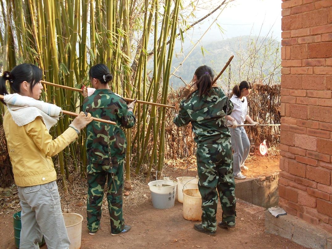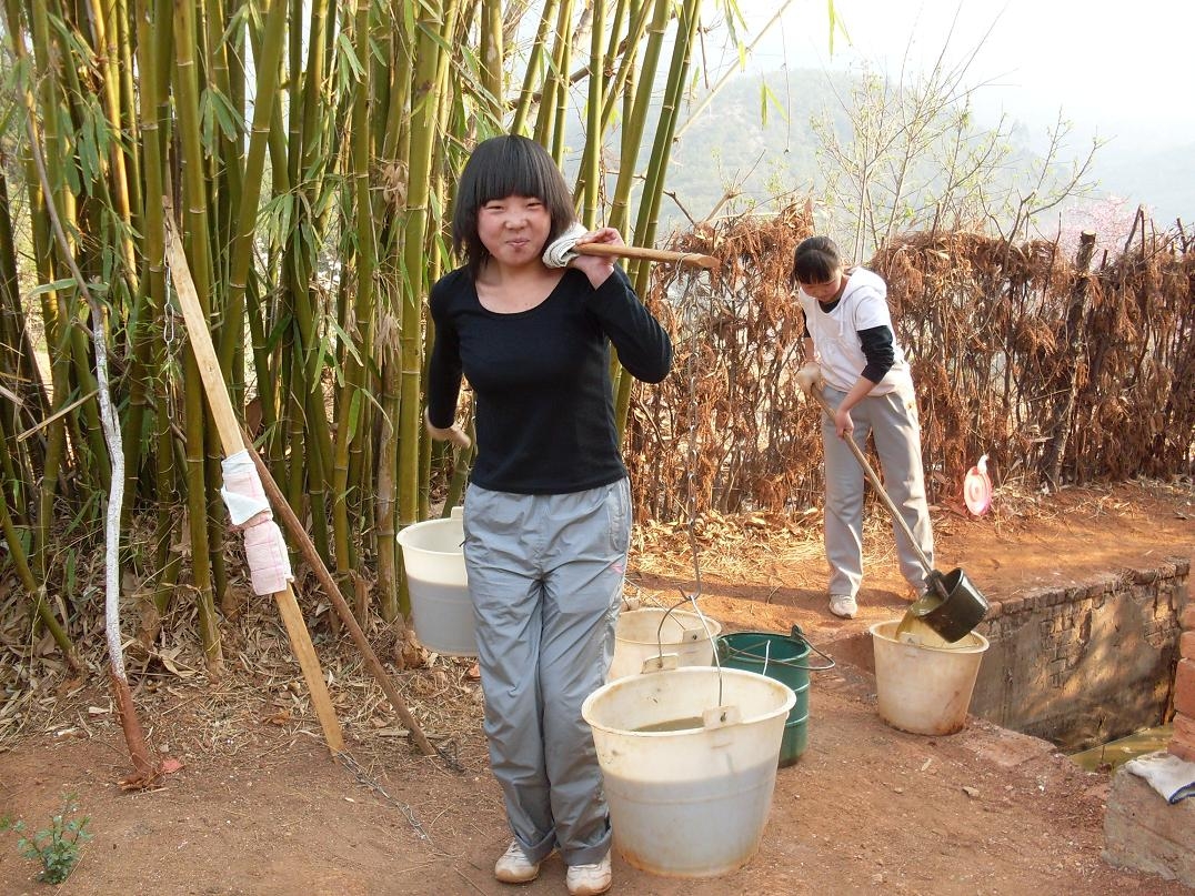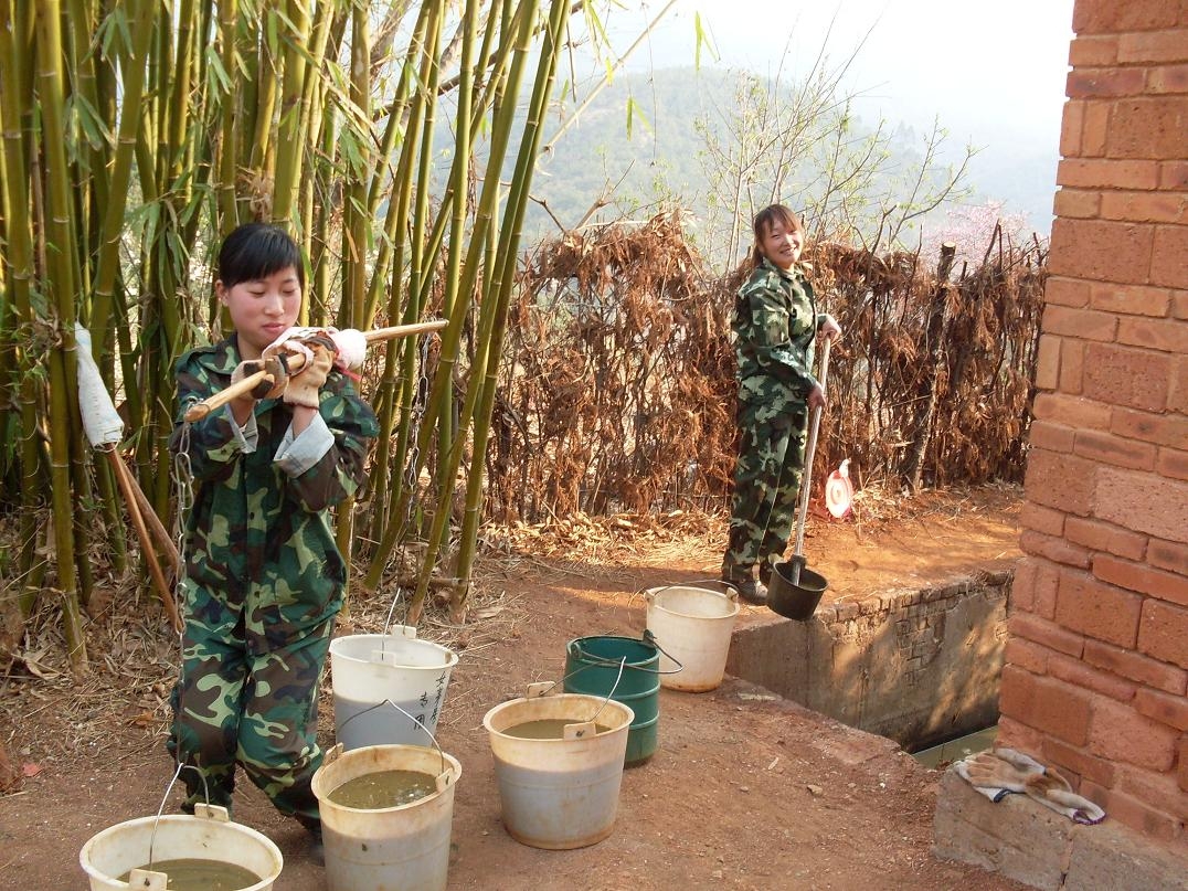 她們在挑大糞,從廁所裡一勺一勺地把臭氣熏天的糞舀到糞桶里,然後挑到菜地裡,再澆到土壤中。 再看看她們的表情,沒有嬌裡嬌氣弱不禁風的樣子,沒有因為幹著世界上最臟最累的活而愁眉苦臉,更沒有因為自己是美豔小姑娘卻幹挑大糞的事而有一星半點怨言,為什麼? 因為她們是禪院草啊!