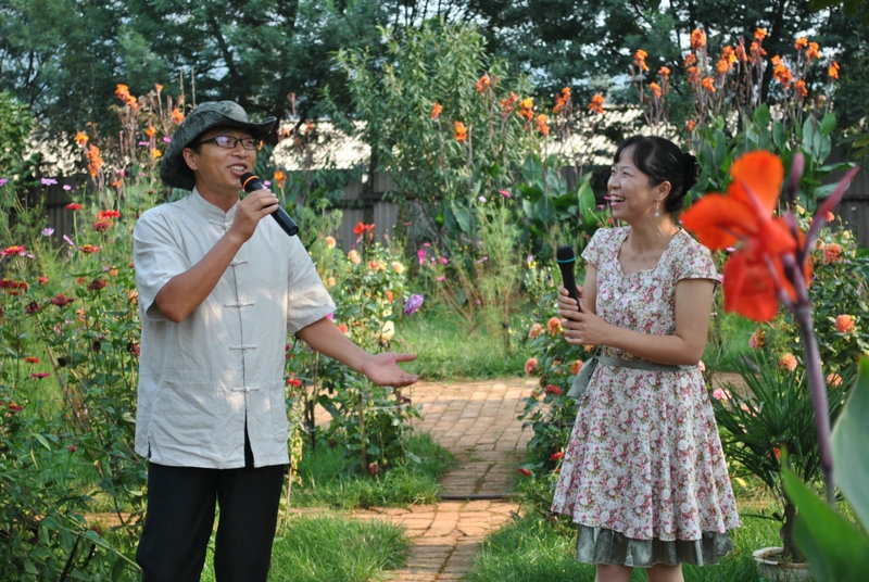 秋高氣爽,桂花飄香,今年的一分院中秋晚會的前半部分就是在百花競放、鬱鬱蔥蔥的靜心苑的一角進行的,有鮮花和綠葉相伴,有涼爽秋風的親吻,上臺表演的親人們好似被優美的環境所感染,一個個綻放得是那麼自然,那麼美麗。