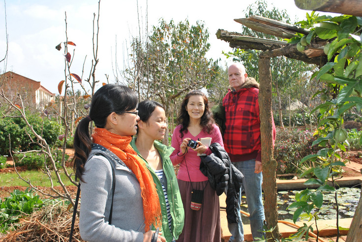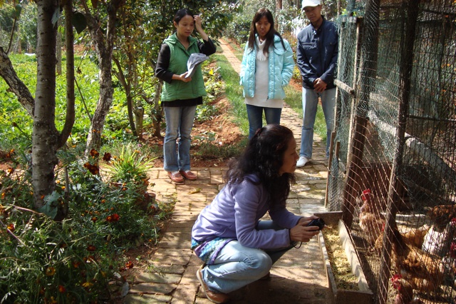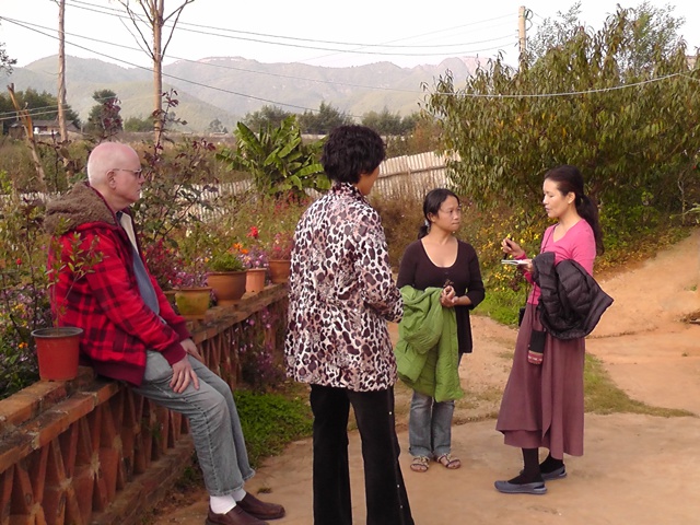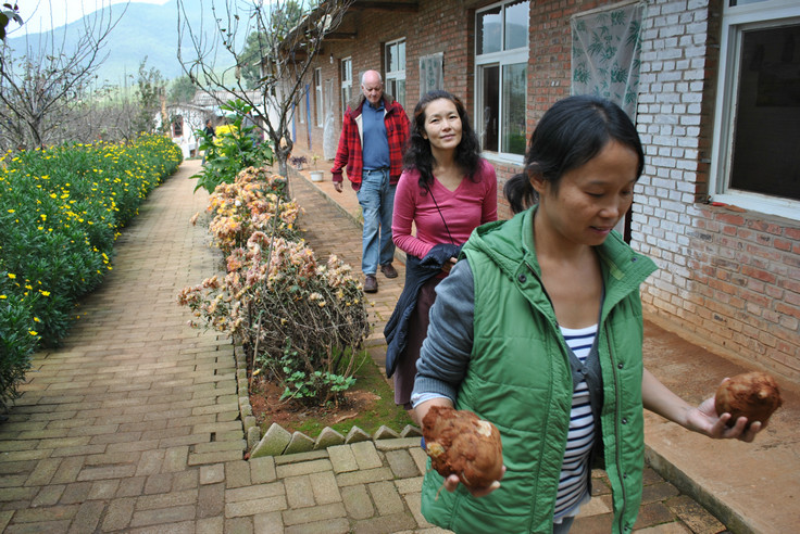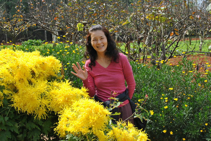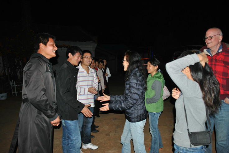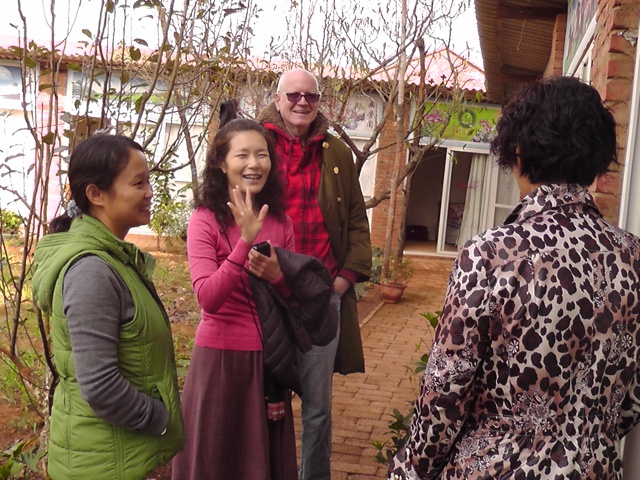 Michiyo(現在已是靈橋草啦! )於11月5日晚近八點半到達一分院,此時天色已黑,親人們打開了聚仙台院子里的彩燈,衣裝整潔地列隊歡迎她的到來,Michiyo下車後大家一一和她問好、握手、擁抱,場面隆重而溫馨,讓她非常感動。 在愛戀和心濤院長的安排下,親人們為她準備了溫馨舒適的房間,她說感覺住得非常舒心。 第二天在院長和愛戀、我、正信、卡爾草的陪同下Michiyo參觀了聚仙台、聖賢苑、卧龍崗,晚上一分院為她舉辦了歡迎晚會。 第三天我們去了鳳凰峽,參觀了那裡的菜地果園,並和親人們圍坐在一起喝茶聊天,大家說說笑笑就如一家人般親密無間。 閑暇時她還和大家一起包餃子,跟佛慈學打太極拳,遇到親人們說幾句日語,學幾句中文,她還很有心讓我們寫下來親人們的草名,學著記發音。 對歡迎晚會上文士表演的魔術她欽佩不已,還拜師偷學了兩招! 她說一分院雖然小一點、生活設施簡單些,但由於生活區域相對集中,經常可以看到或遇到親人們,簡單地交流互動中也感到了大家庭的溫馨氛圍,她很喜歡。 請看她在一分院的生活照及與親人們的合影。