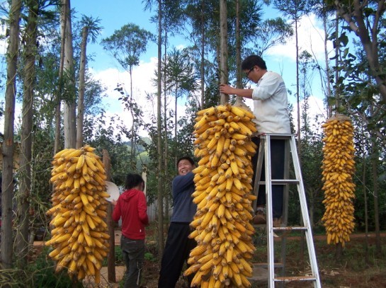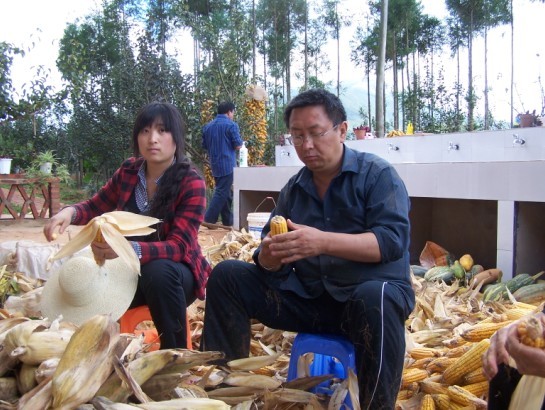 為了搶種油菜,世外桃源除廚師外全體上陣收割成仙谷玉米,幾十人都鑽進玉米地,有笑話的多講笑話,邊說邊笑邊勞動,誰笑話講的多,就多吃幾個饅頭!