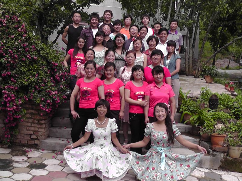 6.鳳凰峽,晚飯後大家在院子里說笑、跳舞,還記得導遊走企鵝步好可愛,像個孩子一樣。