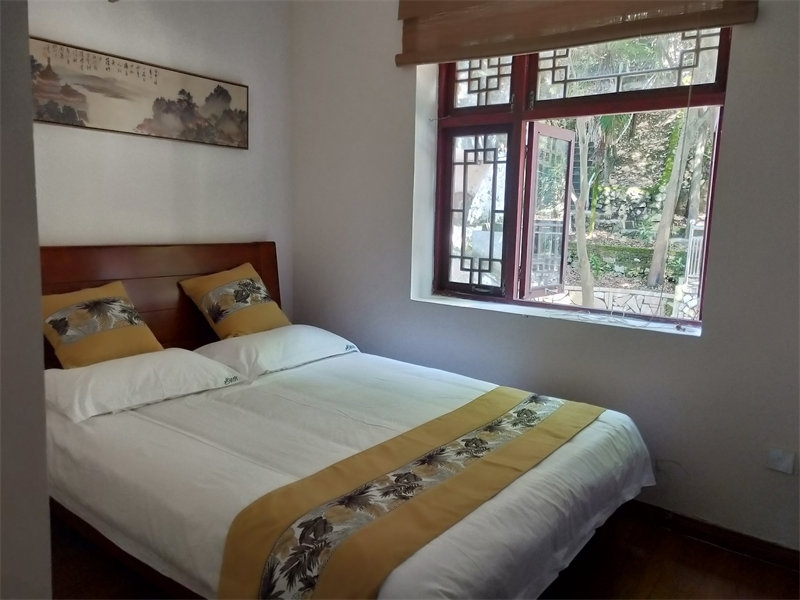 3、請欣賞青春家園的客房,定價是這樣的,豪華大床房一晚180元一間,標間雙床房120元一間,普通大床房150元一間,但其實基本上並沒有買到這麼高的價格,一般團隊過來入住的話,都是按最便宜的100元一間就成交了,如果是禪院草來入住的話,你喜歡這樣的房間嗎? 可以欣賞到窗外的自然山景,還可以聆聽後院的鳥兒鳴唱和潺潺流水聲。