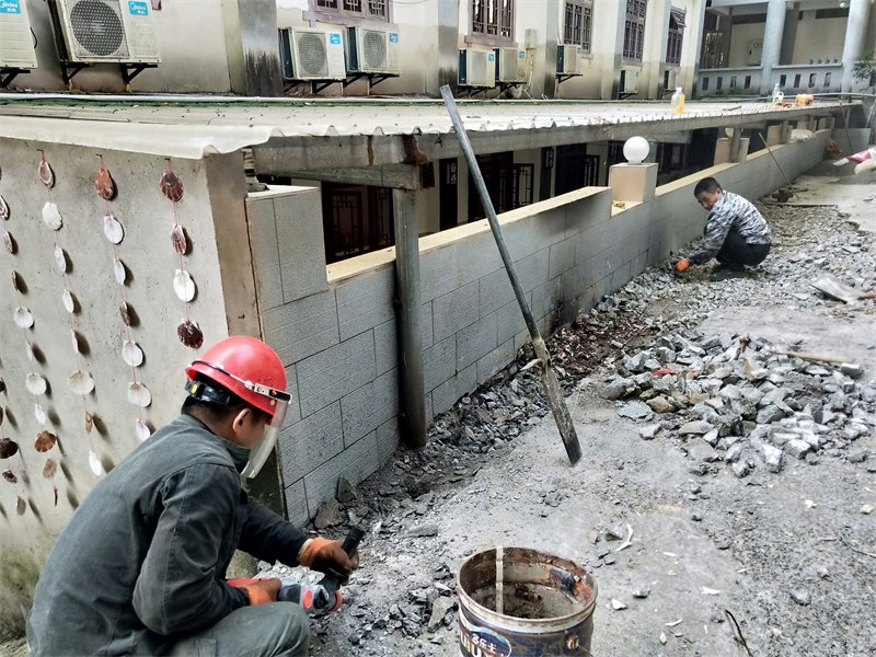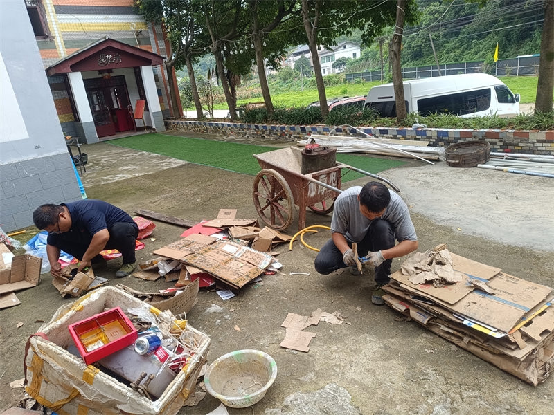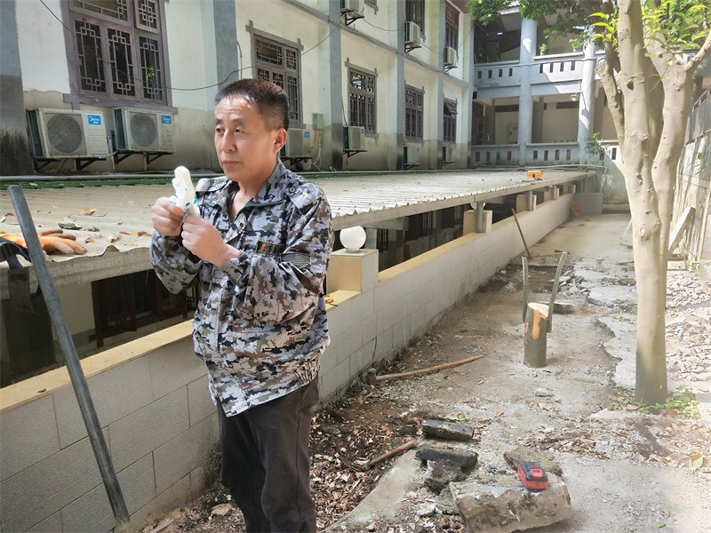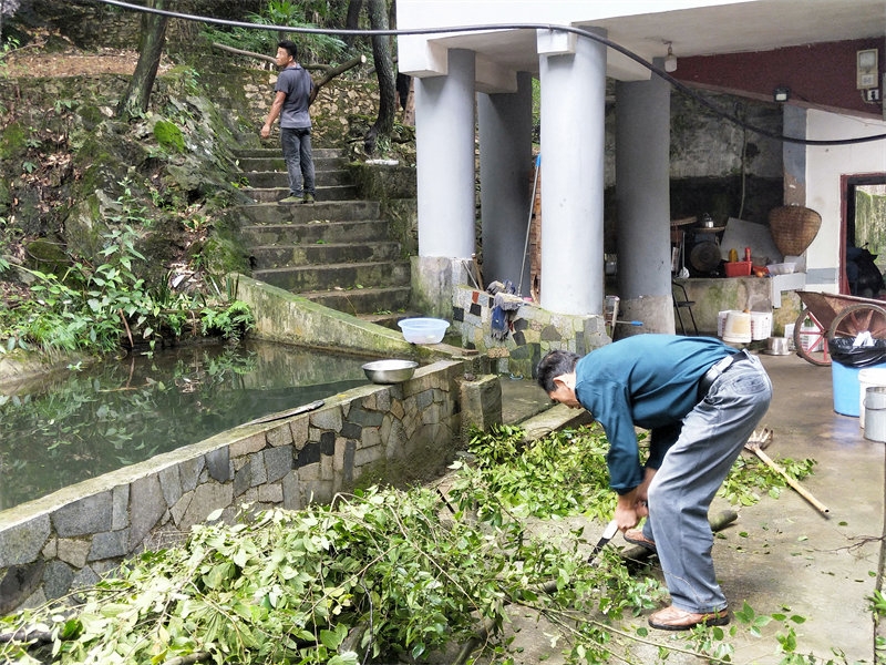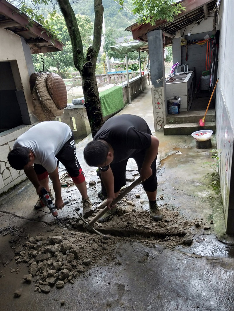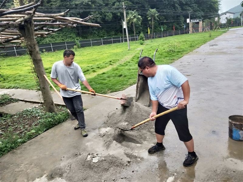 他們在維護通往菜園子的一條條小路,好多路面破裂了,需要重新打水泥修補。