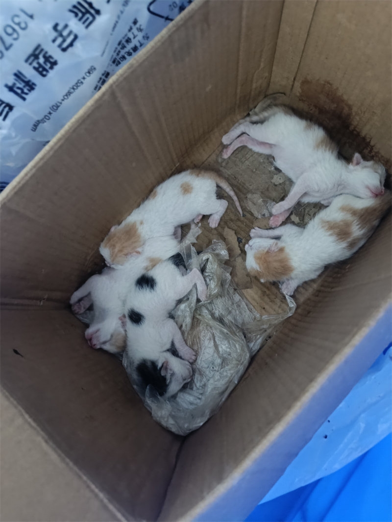 小黑找了一個隱蔽的工具房,那天夜裡,降生了四隻小小狗,而後時隔幾日,小貓咪躲在廚房置物架上的紙箱裡也跟著降生了五隻小可愛,可謂雙喜臨門,這下重慶了。