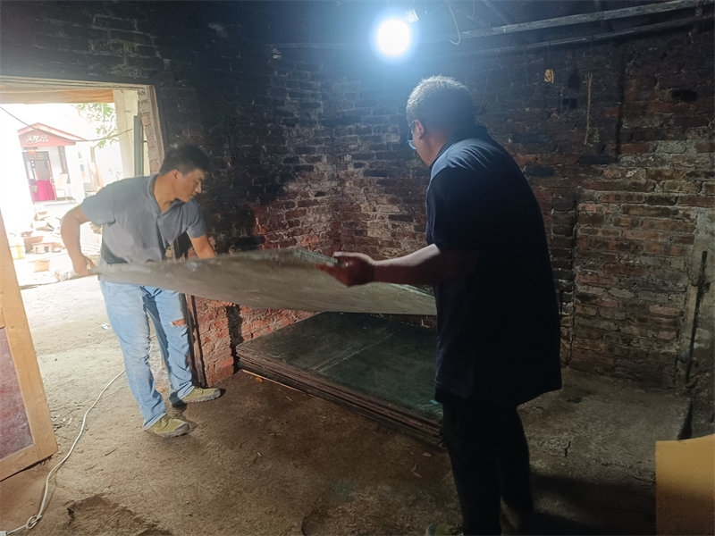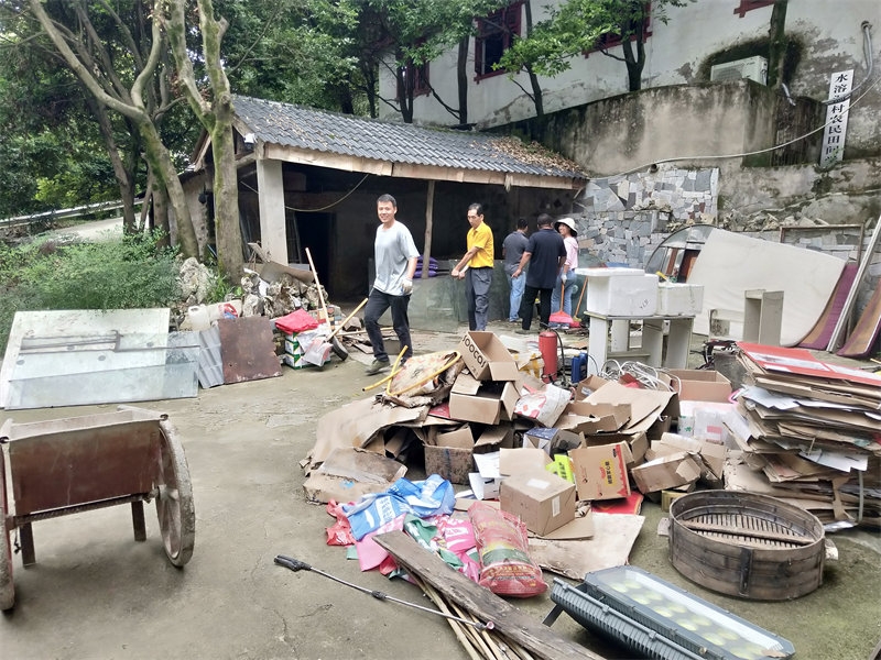他們在整理一個堆滿了紙箱和其他各種物品的柴房雜物間,原來裡面根本進不去人。