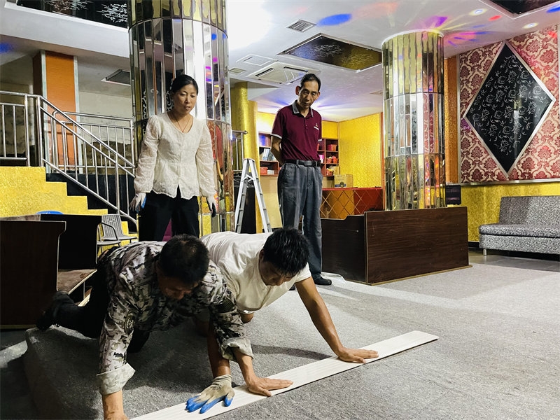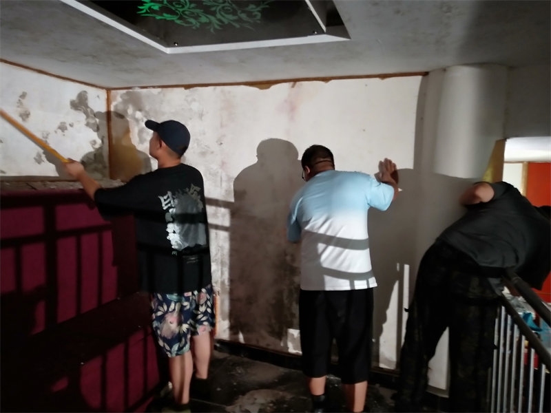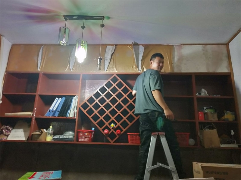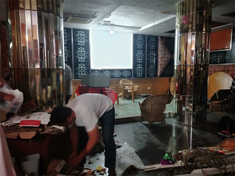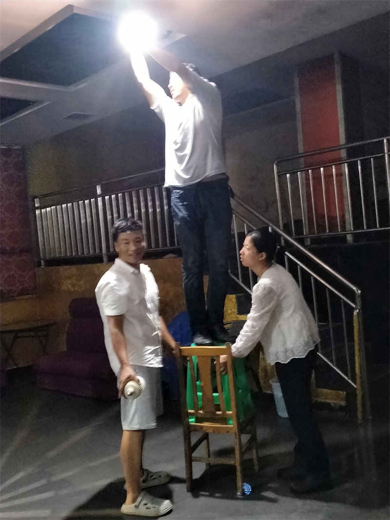 我們初到青春家園時,原來的KTV房堆滿了各種雜物,可謂淩亂不堪。 而且裡面特別陰暗潮濕,一樓二樓地面全是積水。 有幾次迎接客人時,他們都表示想在KTV唱歌,於是為了滿足客人的需求,燕總決要把KTV整理出來。 我們有幾位兄弟姐妹們一起參與,先是把裡面雜物給全部挪出來,接著又把陳舊發黴的牆紙揭下來,待重新抹牆后,又更換上了嶄新的牆紙,二樓處的木質沙發已經全部腐爛,大家齊心協力把那些碎木頭通通清理了出去,在靠近山體的地面製作了一個排水溝,接著又購買了地毯、點歌台音響設備、星空燈等,在進行了全方面的大掃除清潔裝修后, 後面燕總也想辦法解決了KTV的潮濕問題,我們的KTV以全新的姿態出現了。 聰靈是KTV和棋牌室的管理員,負責説明客人點歌和日常衛生維護。 我又一次見證了大家從一片廢墟里創造奇跡。