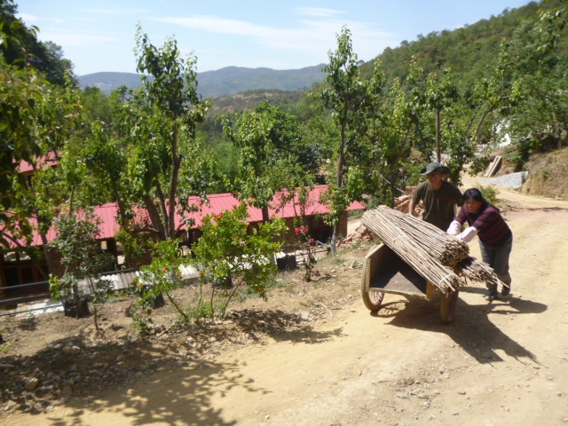家園的兄弟姐妹們真是勤勞善良,每日裡勤奮地建設著家園,家園的景色越來越美,住房也越來越寬鬆,今天從一分院來的幾位兄弟姐妹一到達,沒有休息片刻,就投入了往半山腰搬運磚頭和給羅漢果插竹竿的工作,我拍了幾張照片,許多兄弟姐妹沒有進入鏡頭,但他們在勞動中,善良勤奮的恆德院長和善義今天從昆明運來了羅漢果爬秧竹竿,向我勤勞的親人們致敬!
