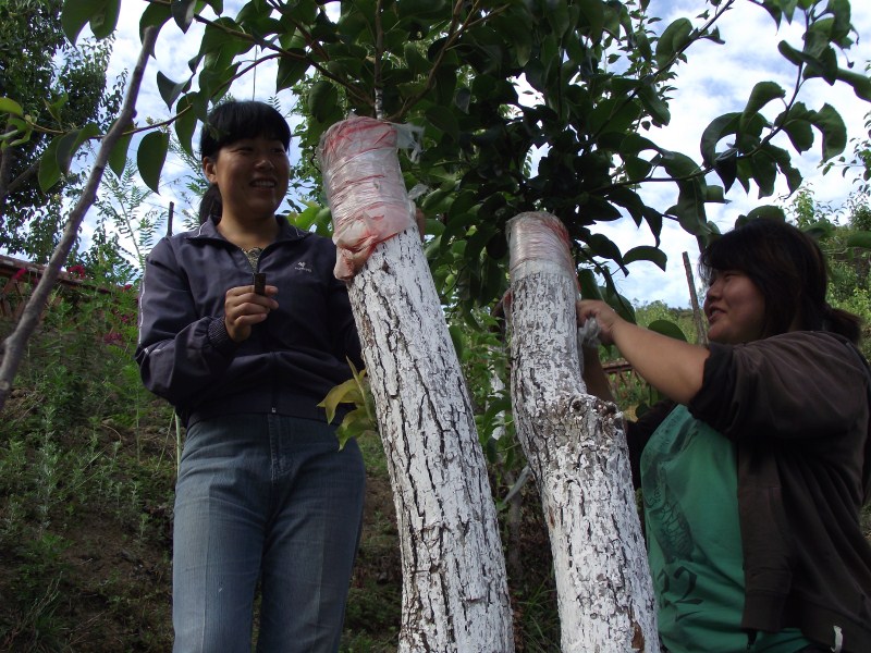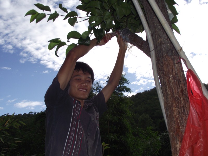 嫁接的果樹純活率99%以上。。 原來為了嫁接牢固而裹上去的塑膠膜要去掉哟。