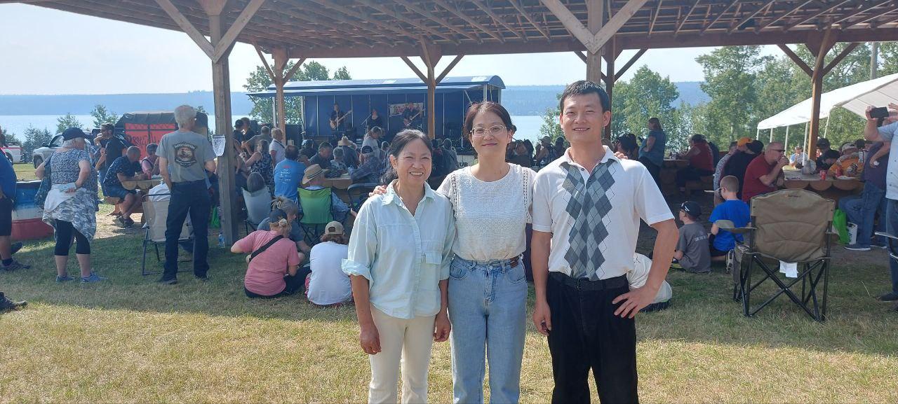 總是看到花果山和泰國家園兄弟姐妹們的幸福生活,聽著按摩堂和企業家園兄弟姐妹們的幸福生活,有點羡慕加嫉妒哟! 昨天,我們去參加一年一度加國總院附近的大蒜節,節日雖說不是人山人海,但人潮湧動,我們吃冰激淋,吃漢堡和熱狗,聽著歌唱家們在舞臺上演唱,逛逛每一個攤點,你們說美不美吧! 看看心蕊、同心、輝一嘴咧到耳朵邊的樣子,就知道加國總院的日子還是很甜蜜的哟。