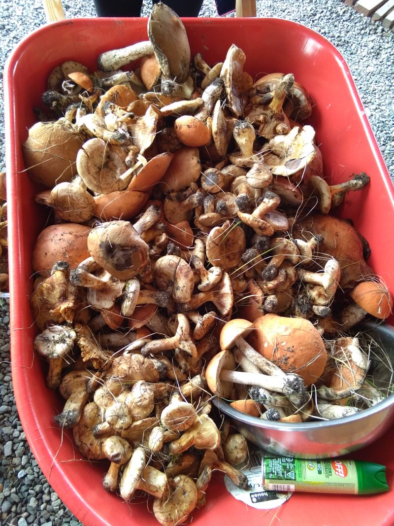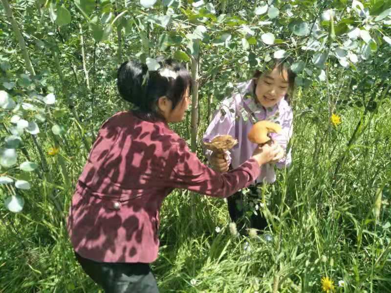 今天發現了一個新大陸,就在綠洲家園裡,早飯後我們四人前往百里莊辦事,順便到淘寶店看看有沒有什麼可以淘的,淘到一個開水壺和幾個小碟子,回來后娥皇把客人剩下的一點麵包撕碎后走到林邊去扔給小鳥吃,結果林中發現了蘑菇,後來沿著林子邊走,走到靠近公路旁的楊樹林中,哎呀媽呀! 草地上生長著一大片蘑菇,娥皇回來激動得都上氣不接下氣,說:“蘑菇,蘑菇,一大片蘑菇。 “心蕊和娥皇前往採蘑菇,結果拿的一個盆子根本裝不下,娥皇返回再取一個盆子,說蘑菇太多了,讓嬌仙前去協助戰鬥,我聽見蘑菇多,心癢癢,也前往,天哪! 兩個盆子根本裝不下,後來又找一個食品框裝蘑菇,結果還是裝不下,最後嬌仙就把小推車推來裝蘑菇了。
