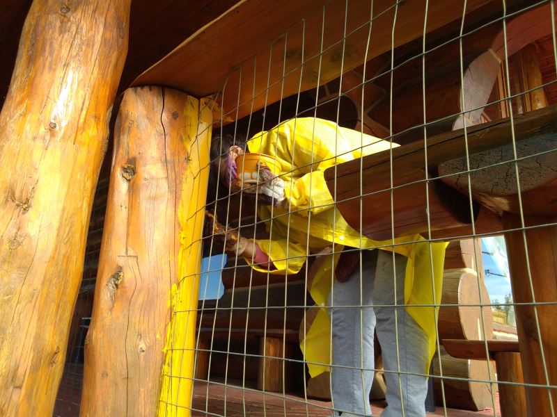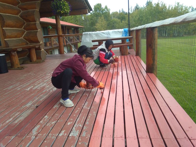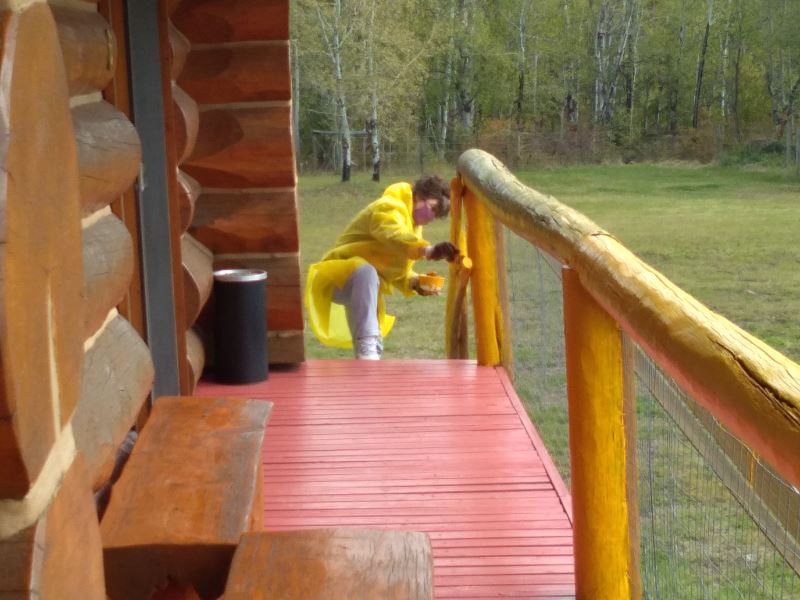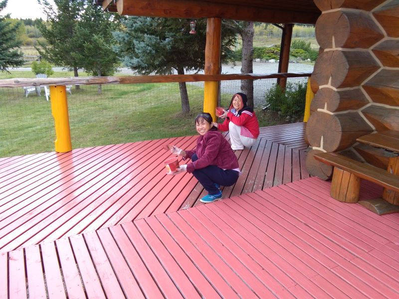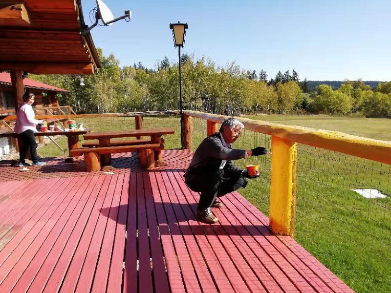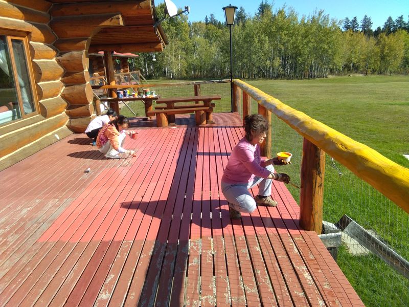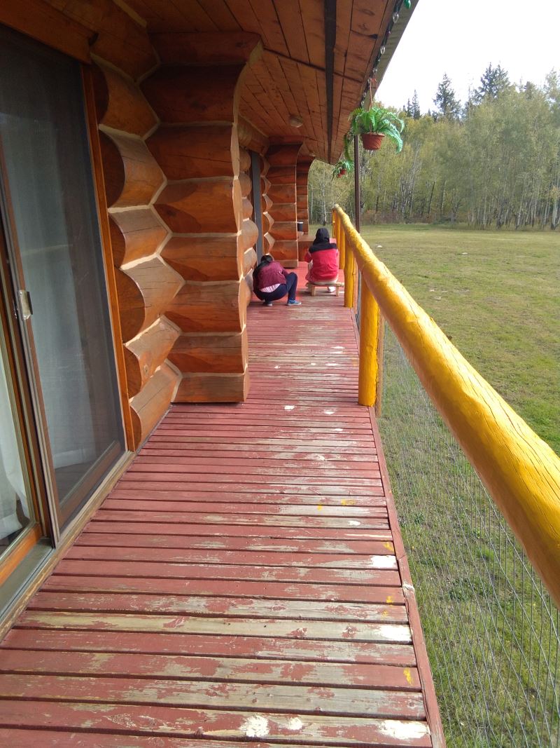 加國綠洲生意進入蕭條期了,上月29日有四位客人入住,以後除零星入住的外,再沒有多少客人入住了,這個蕭條期將持續到明年三月底。 綠洲外部,尤其是走廊的柱子和地板經過風吹日曬和冬天寒風大雪侵襲后不僅原來的油漆脫落,有些柱子和橫桿開始腐化,春夏秋三季因為有客人,所以無法進行重新油漆,剛好乘著尚未下雪且無房客,這幾天抓緊時間進行油漆,因為太寒冷的話無法油漆,其實作為油漆,天氣已經達到零度,是不合適油漆的,但沒辦法,只有乘最近幾天實施油漆。 油漆工作尚未結束,今天還得干一天。