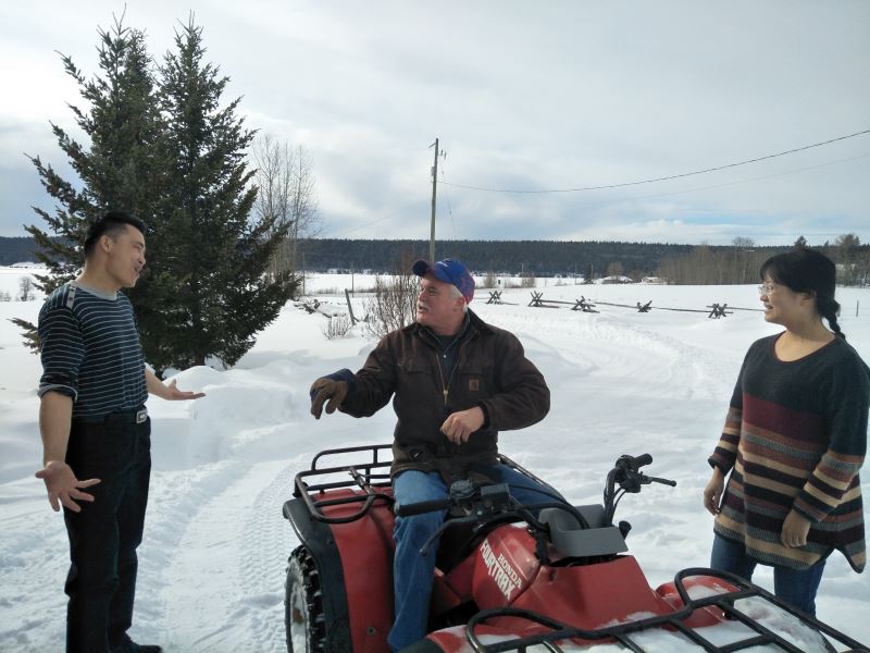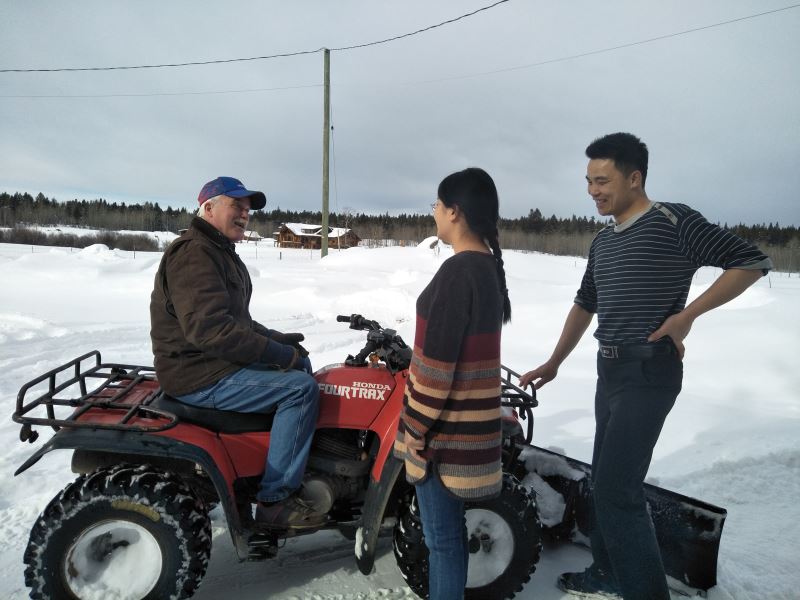 最近幾乎天天下雪,尤其前天雪下的很大,鄰居怕我們有事出不去,所以今天上午來幫我們鏟雪清理道路,剛好今天要出門,道路暢通了。 上午鄰居來鏟雪時我們正在吃飯,聽見車輛聲響,從窗戶看到鄰居開車來鏟雪,我們趕緊出去迎接打招呼,我穿著拖鞋,佛義沒來得及穿棉衣服就出去了,有照片為證。 請大家欣賞天使鄰居的風采。 2018-02-25