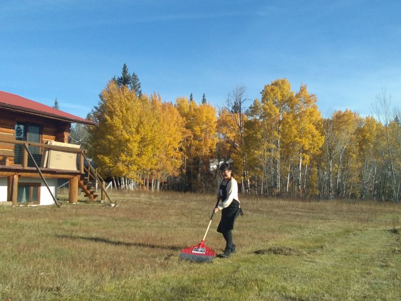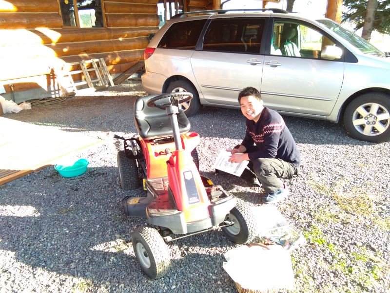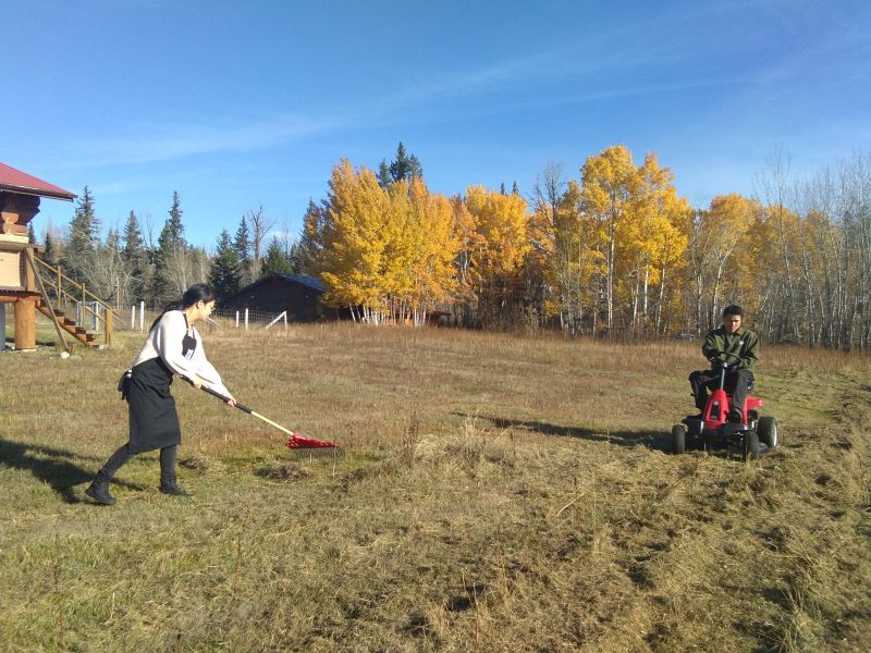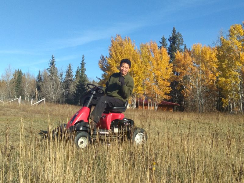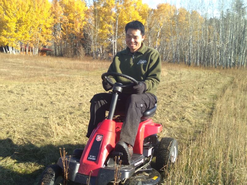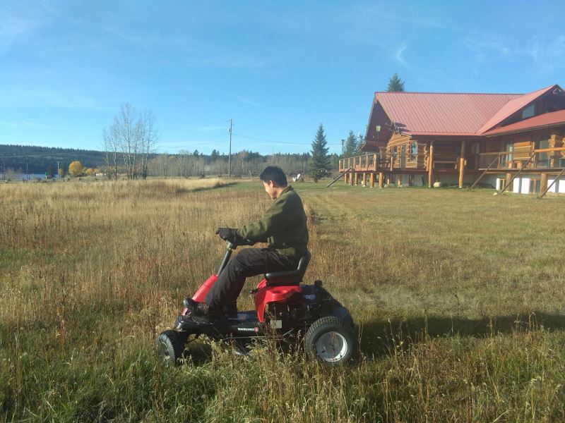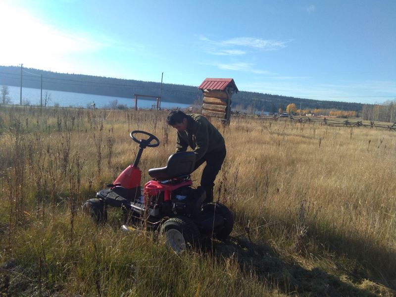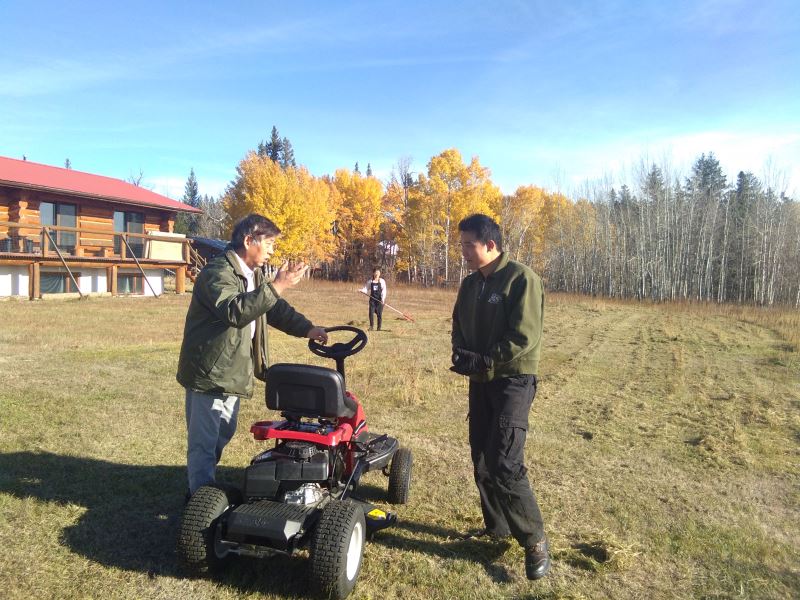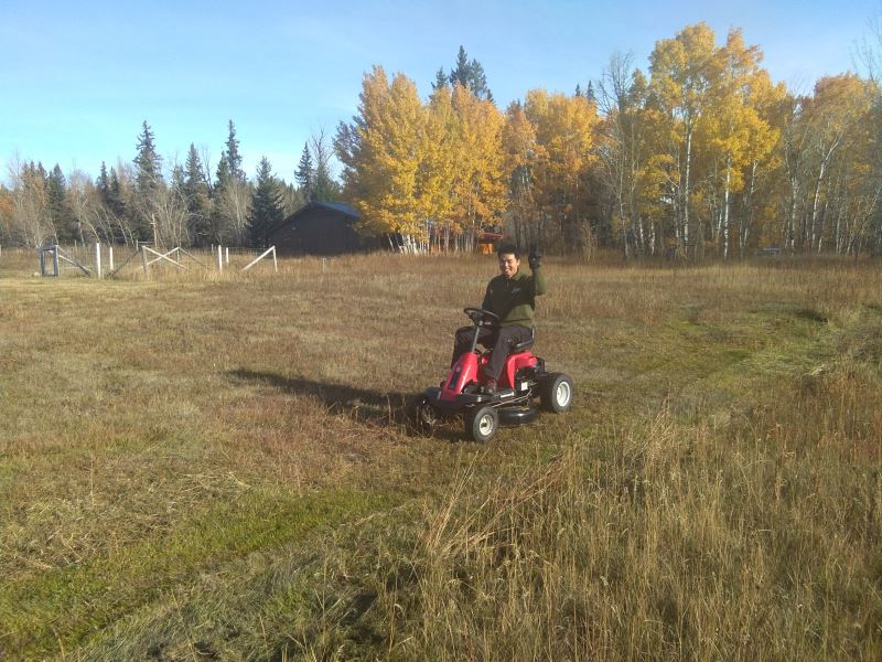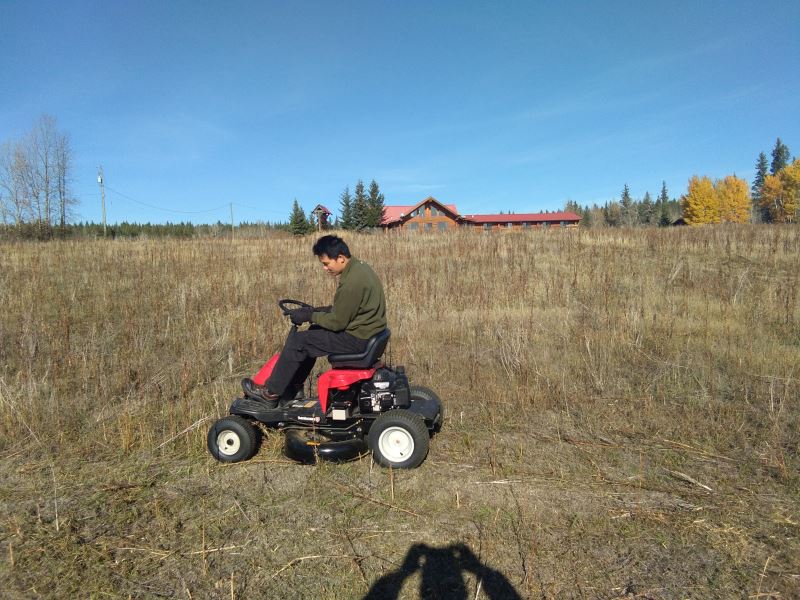 最近幾天,生命綠洲豔陽高照,草青水秀,拉卡拉喀什湖上波光盈盈,97號高速公路上車來車往,前天我們拉來了割草機,心靈手巧聰明能乾的佛義把割草機部件一件件安裝好,解決了許多技術難題,今天早晨生命綠洲草坪建設正式開工。 主體建築前後左右都是草,至少有50畝草地,幾乎全是一尺多高的茅草,今天開始割草整理。 在這秋高氣爽藍天白雲溫暖如春的日子里,勞作在大自然中感覺爽極了,簡直好像到了千年界。 我在想,如果此時全體禪院草都在這裡,全體出動割草收草順便沤肥,那將是多麼熱鬧激情的景象啊! 請欣賞圖片。