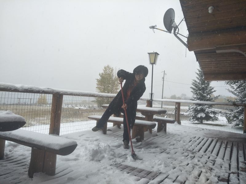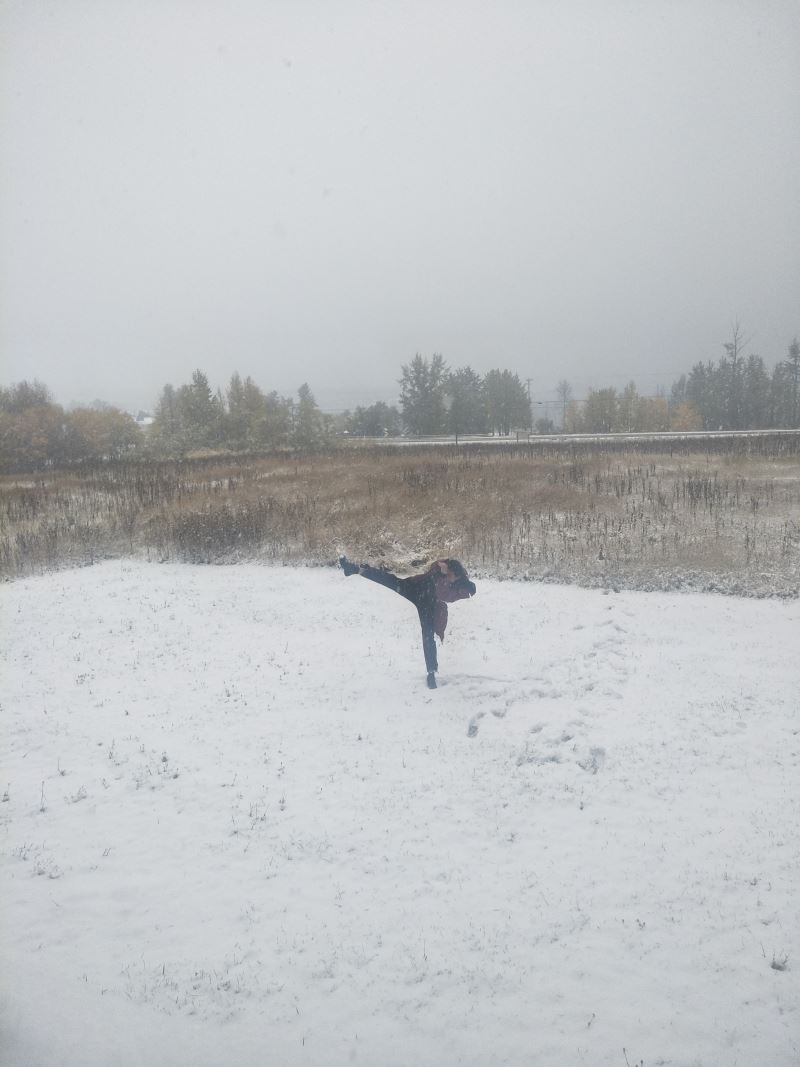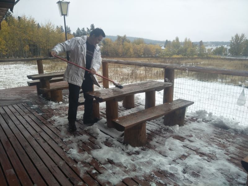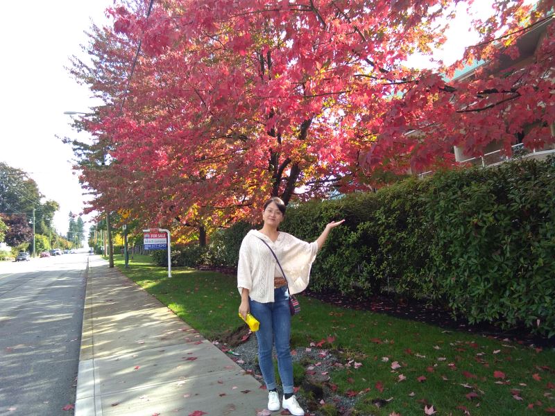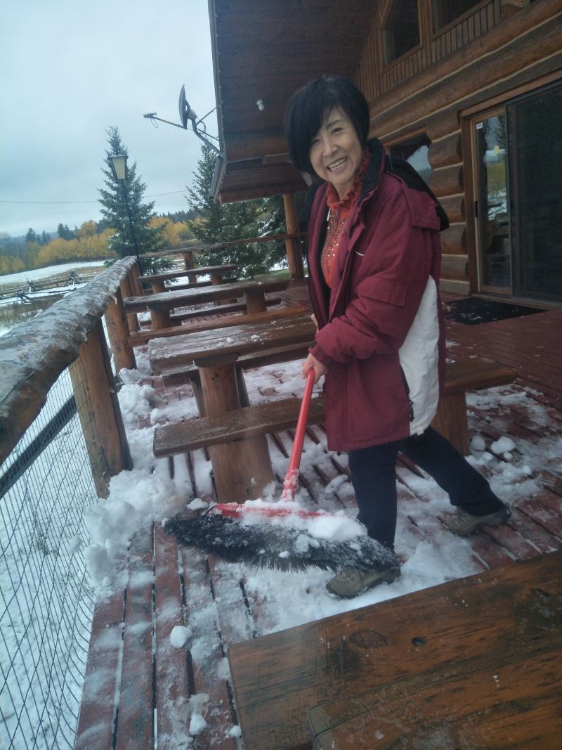 娥皇:「雪還在下,昨天晚上還是晴空萬里繁星漫天,早上起來就是大雪紛飛白茫茫一片,真是太不可思議了。 “——加拿大BC省時間2017-10-14 生命綠洲的第一場雪,兩個小孩子興奮地在玩雪,請欣賞。 想玩雪的小孩子們快到生命綠洲來打雪仗啊! 禪院草之家秋意深深,楓葉血紅,請欣賞美女與楓葉情。