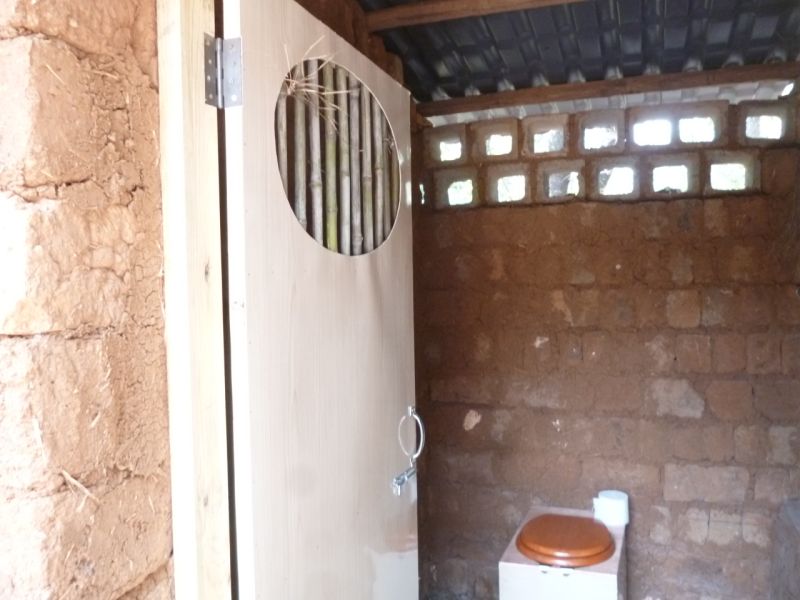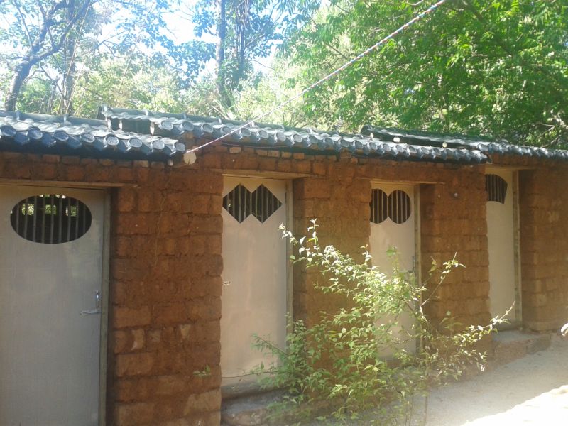 生態酒店給員工建了一個廁所,當然,這不是給入住酒店的客人用的,僅僅是自己的員工使用的,大家看看,這樣的廁所夠生態環保了吧? 沒用鋼筋水泥,全是石頭、土坯、木頭、竹子、沙子、瓦片做的,門有點藝術性吧。