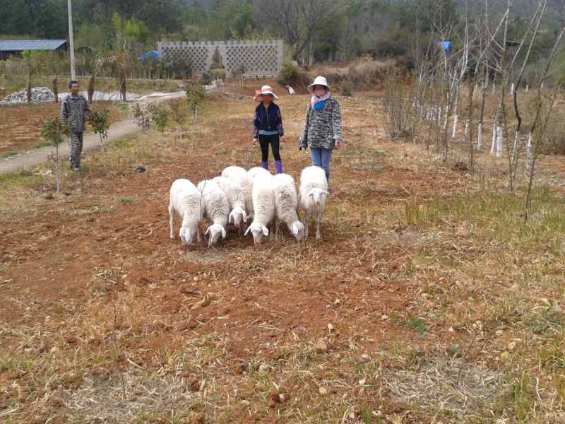 今天中午八隻喜羊羊千里迢迢從河南周口趕到隱逸山莊,一男七女,有兩位牧羊姑娘趕進了羊圈,從此家園有羊糞了,加上雞糞、豬糞、人糞和沤肥及EM菌,山莊的肥料問題可以解決了,真正的無公害的種植養殖觀光旅遊一體化社區形成了,請欣賞圖片。