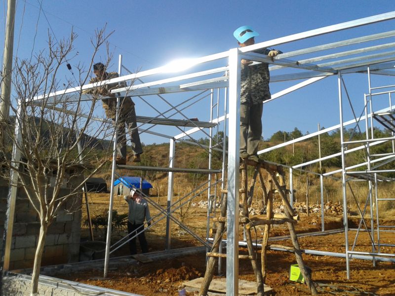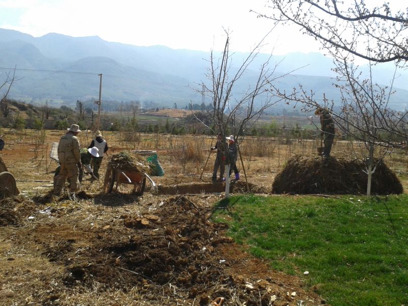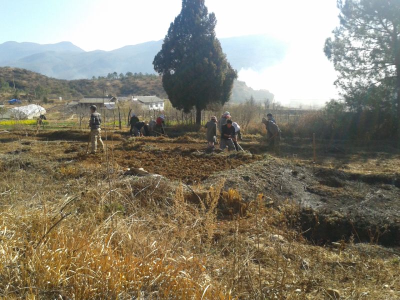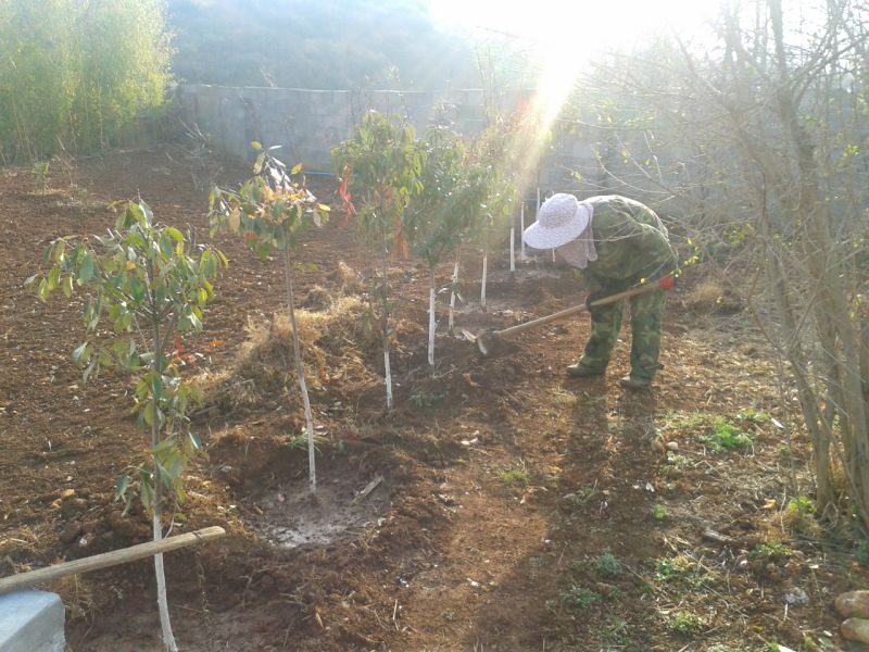 去年冬天,我們種植了蠶豆和豌豆,目前長勢良好,播種了兩片土豆,最近開墾了一片地準備種玉米,還留了幾塊地準備種黃豆,除此之外,九門臺和食堂餐廳的建設依舊在進行,下星期準備再蓋一個豬圈,準備養六頭豬,蓋一個羊圈,準備養6隻羊,再加蓋雞棚,準備再養一百多隻蛋雞,最近一段時間,還移栽了棗樹、梨樹、核桃樹等等,葡萄苗栽植了近160株,當然, 還養了許多花卉,一切正在朝著欣欣向榮景象發展。