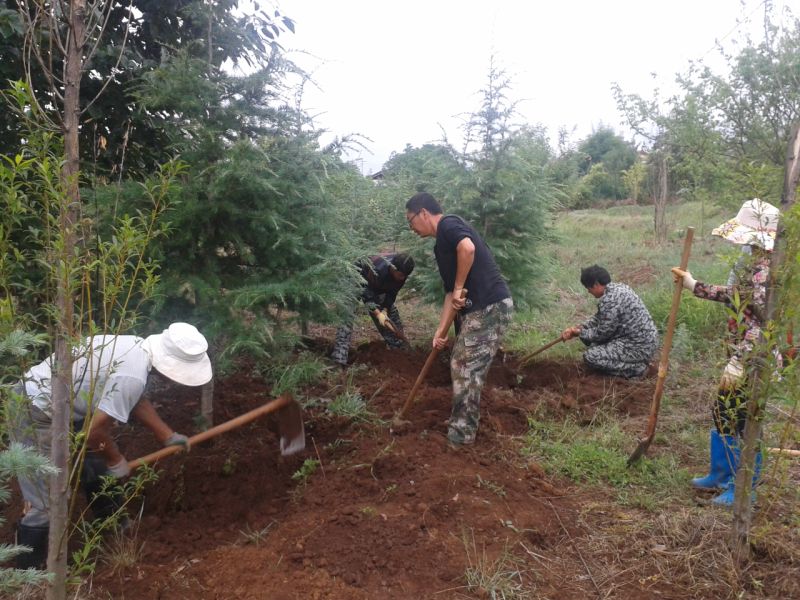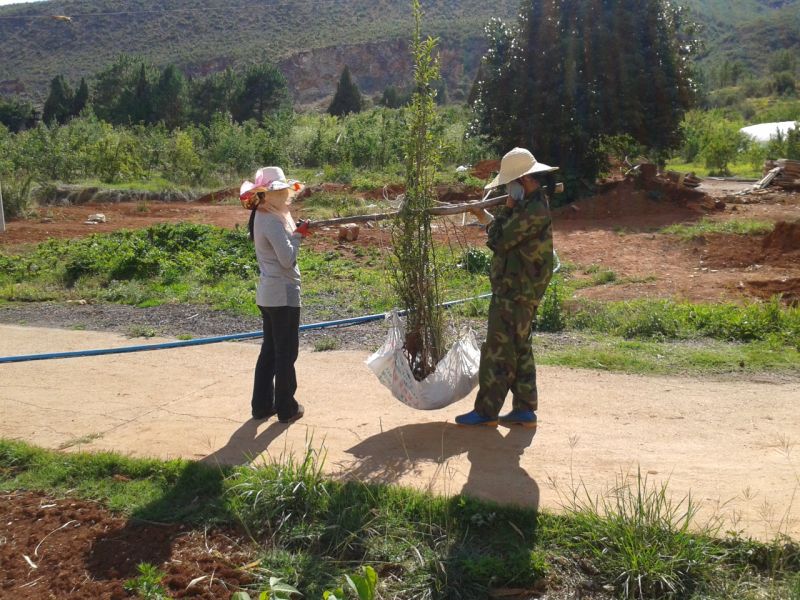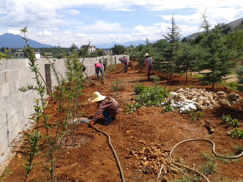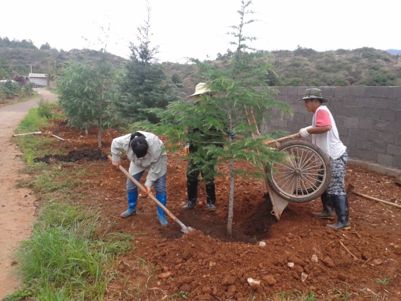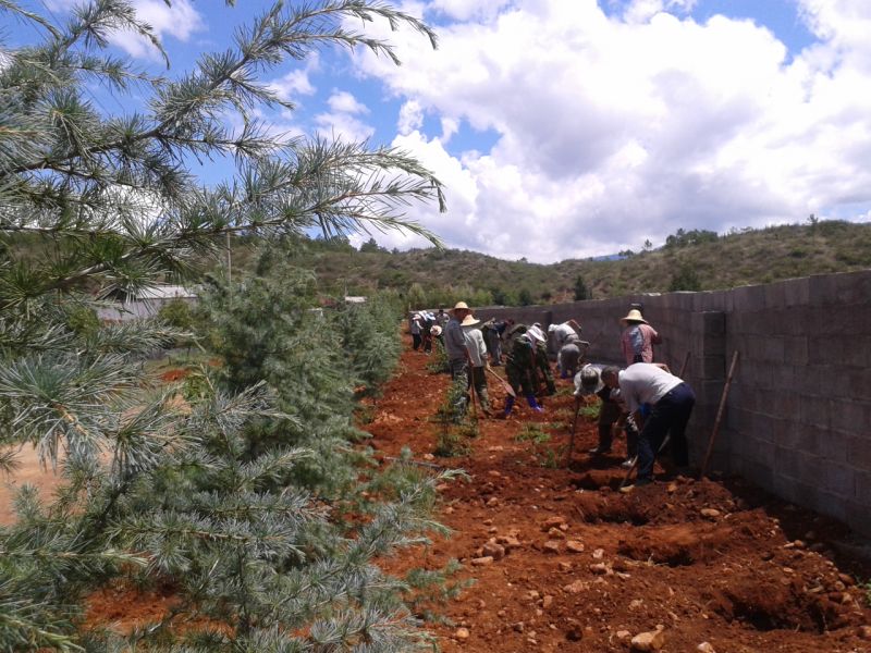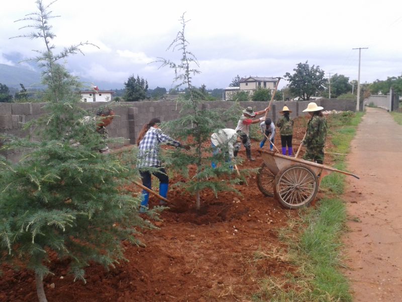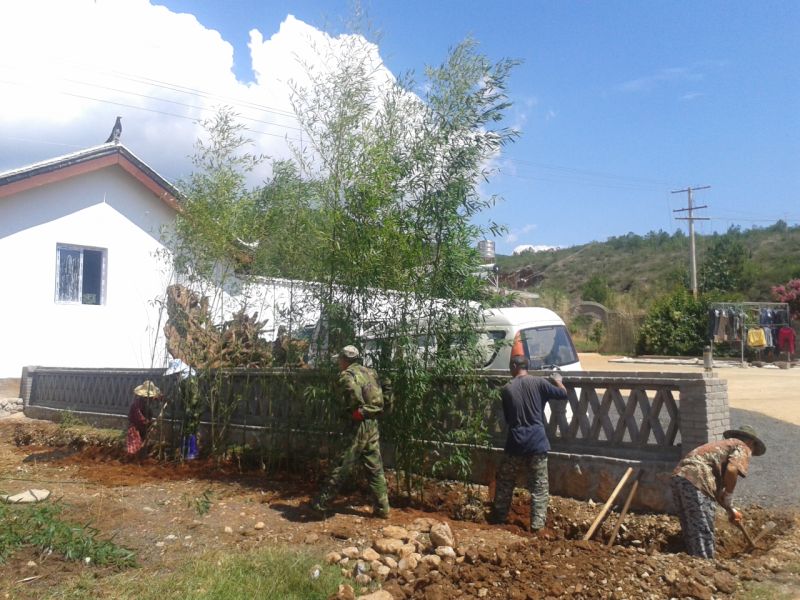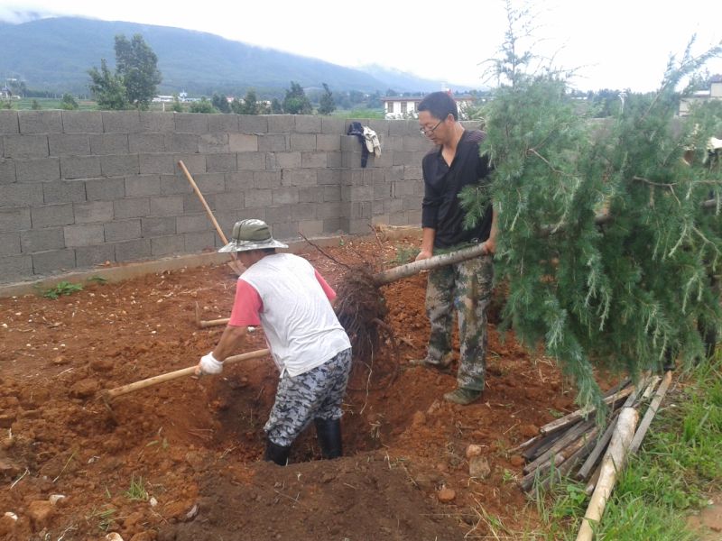 強體力勞作,從早晨不到七點開始勞動,直到傍晚六點結束,親人們用三天時間挖坑、施肥、填土、移栽、澆水,截止昨日中午一條美麗的雪松大道建造了出來,同時移栽了一百多株木瓜樹和一道竹林牆,再過兩年,等這些樹木長高,這條大道將是情人牽手漫步的情趣所在。