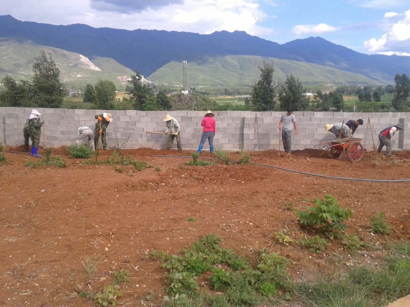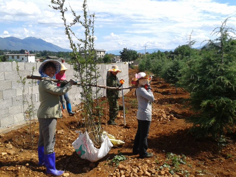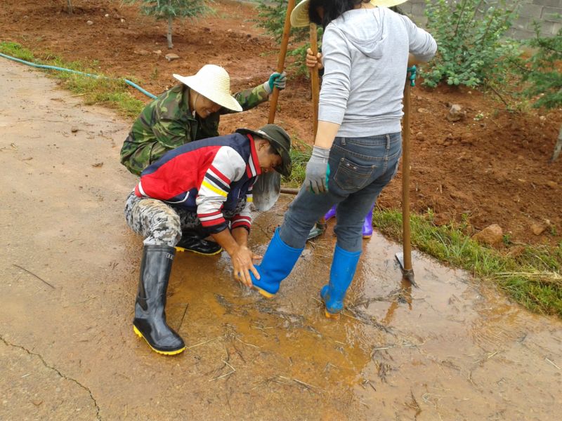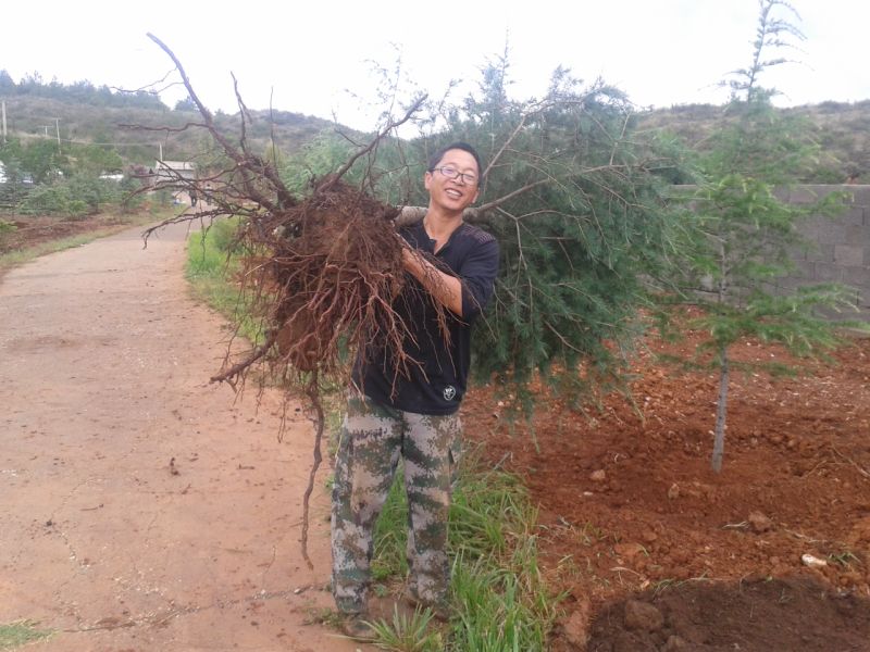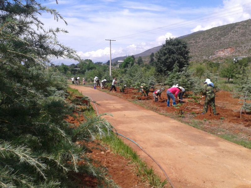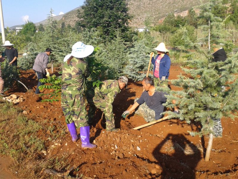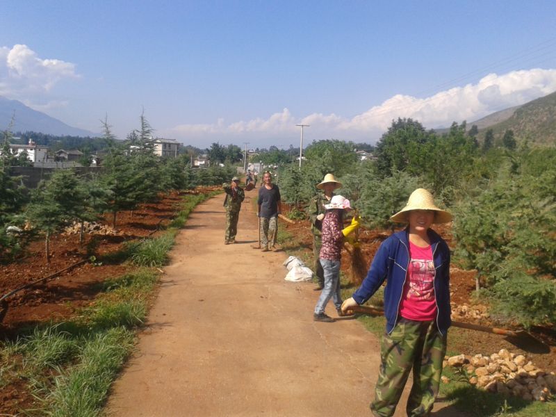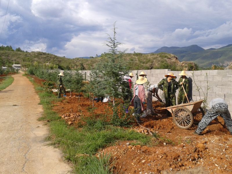 強體力勞作,從早晨不到七點開始勞動,直到傍晚六點結束,親人們用三天時間挖坑、施肥、填土、移栽、澆水,截止昨日中午一條美麗的雪松大道建造了出來,同時移栽了一百多株木瓜樹和一道竹林牆,再過兩年,等這些樹木長高,這條大道將是情人牽手漫步的情趣所在。