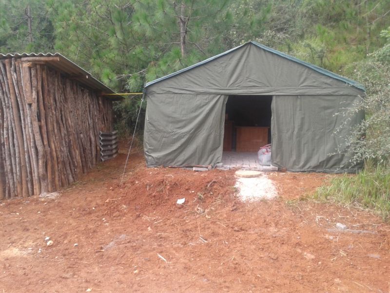 機場坐落在草叢、灌木叢、樹木茂密的地方,地方很寬敞,不僅停機坪寬敞,飛機們迴旋的餘地也寬敞,這裡搭了四頂帳篷,可以住四位兄弟姐妹,必要時,可以住八位。