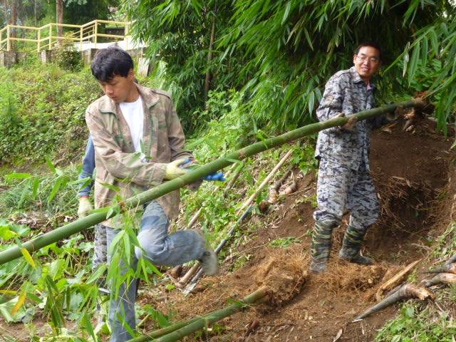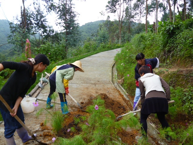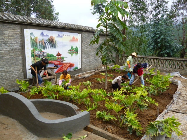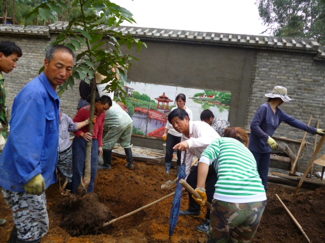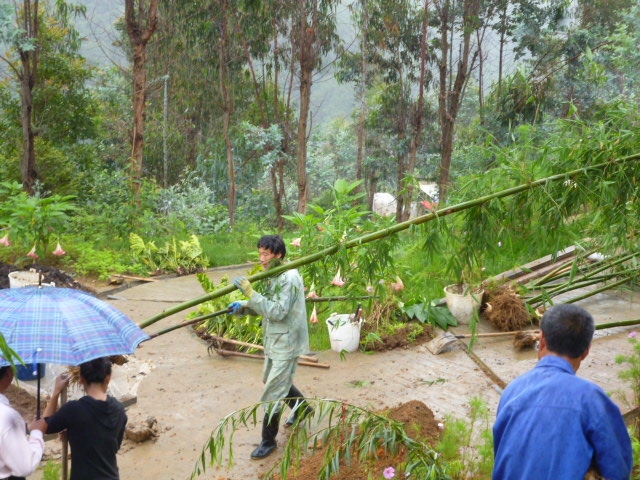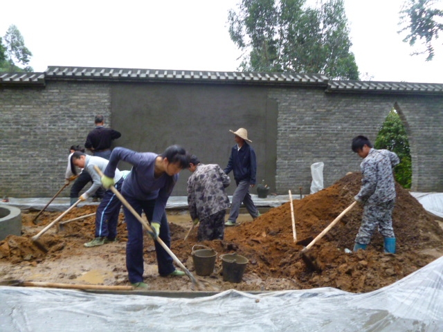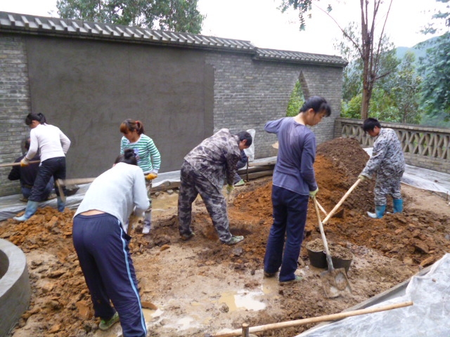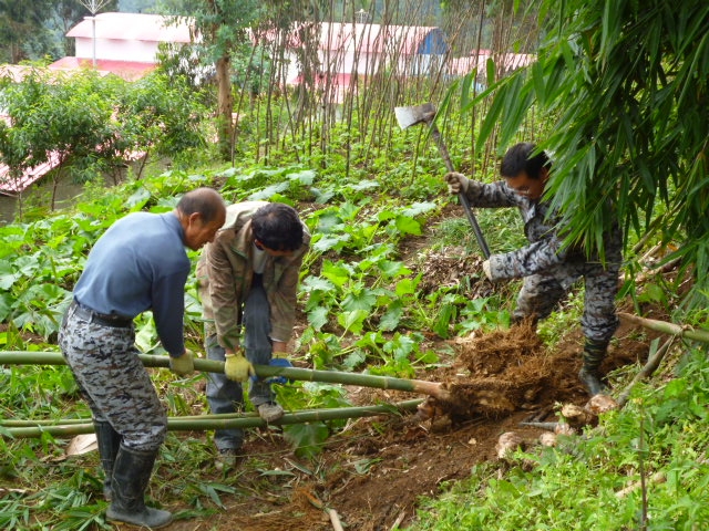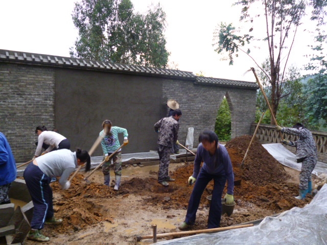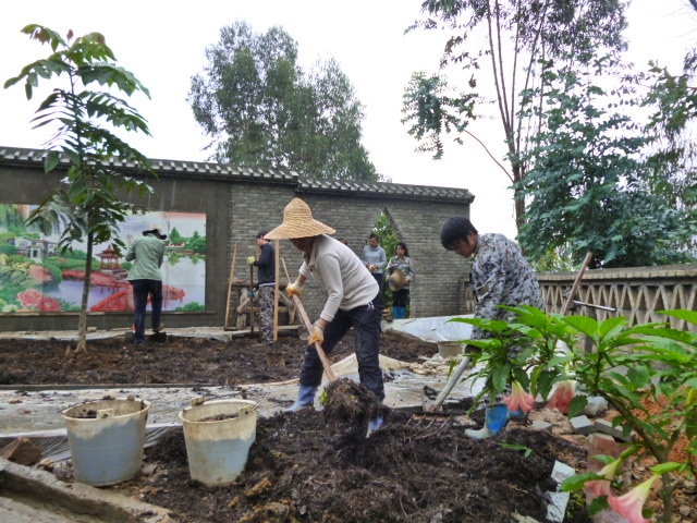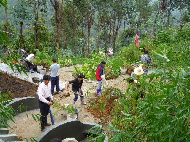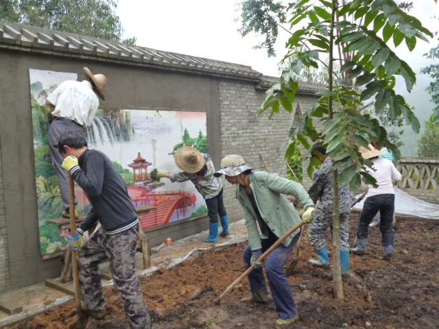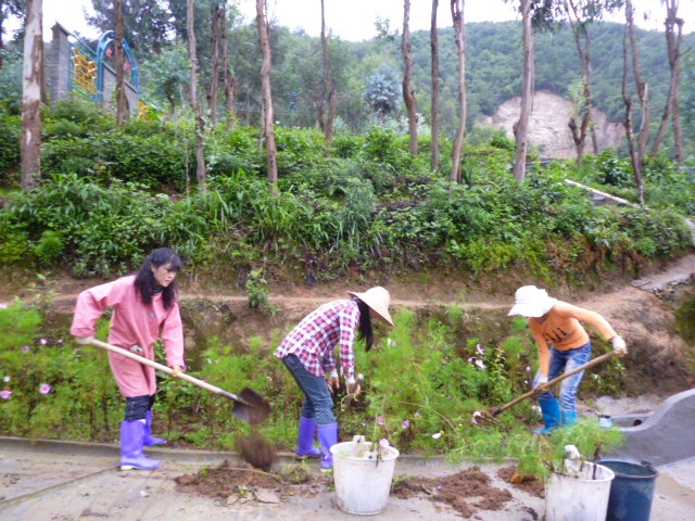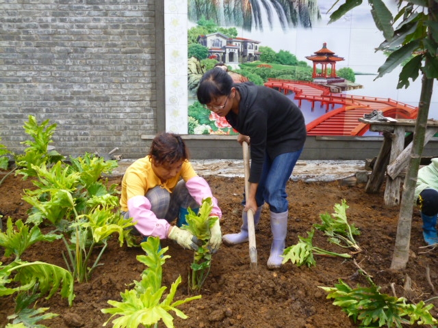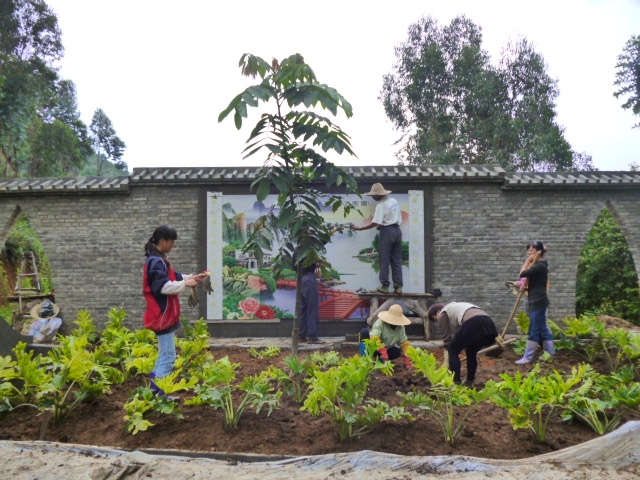 汗水浸透了衣衫,與雨水匯成一片,最近幾乎天天下雨,兄弟姐妹們就在雨水中辛勤勞作,家園越來越美麗,可以稱得上是真正的世外桃源了。
