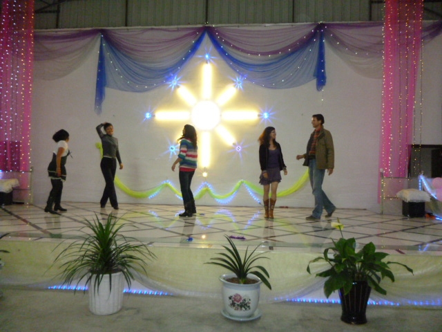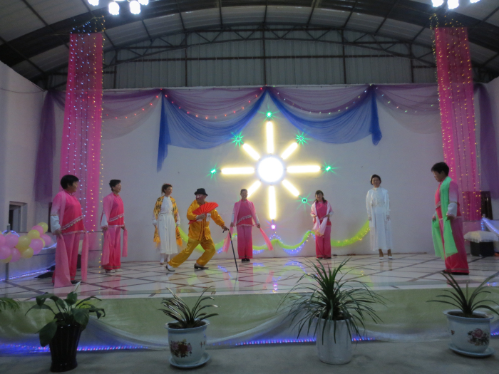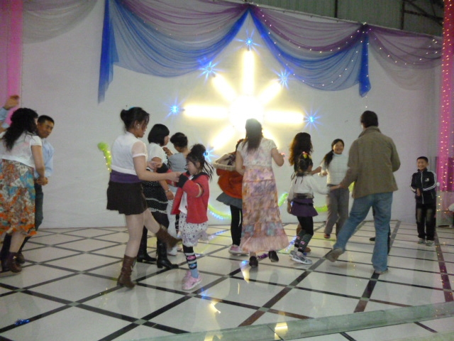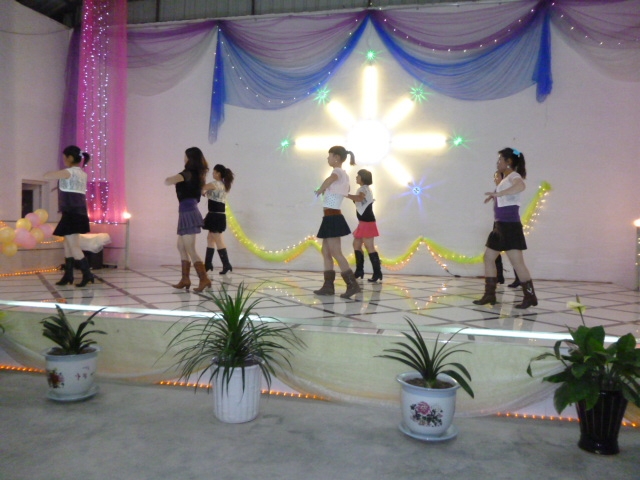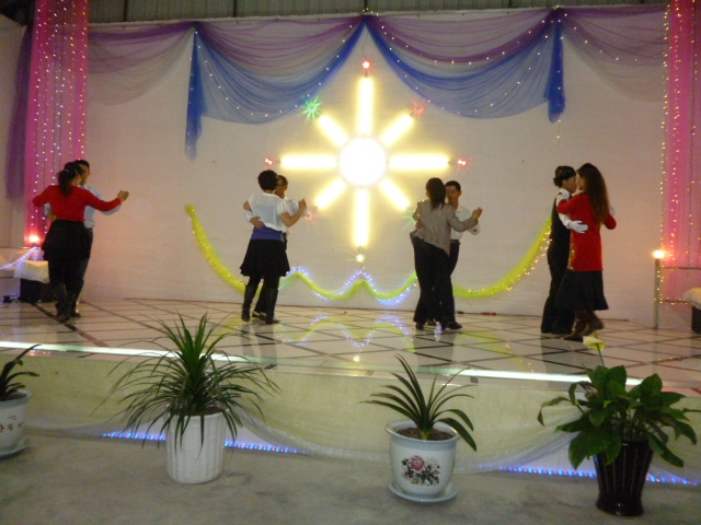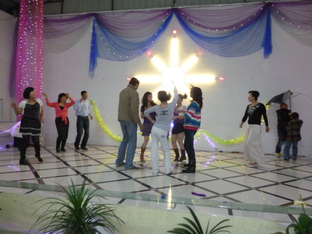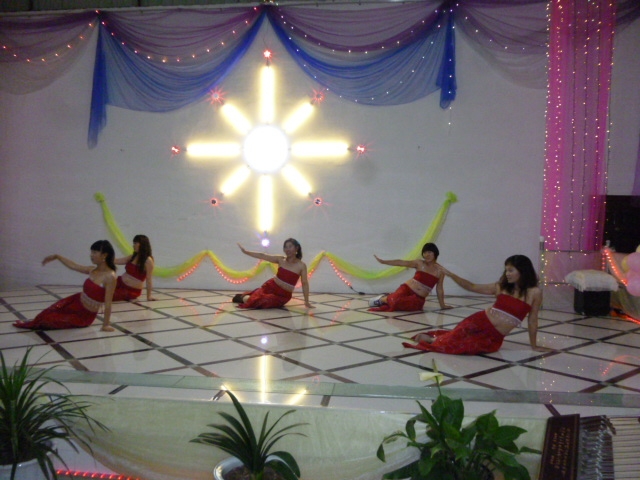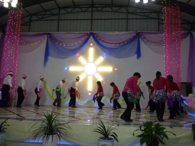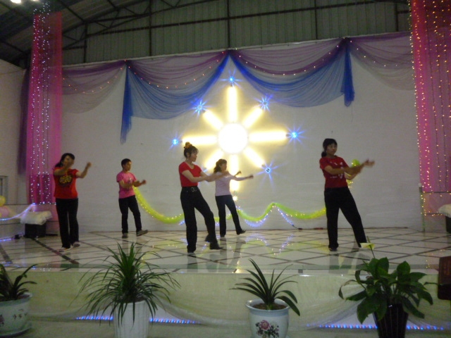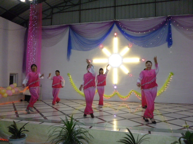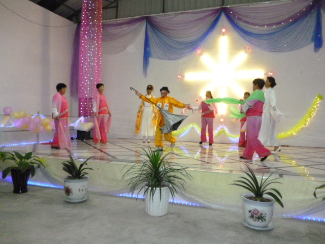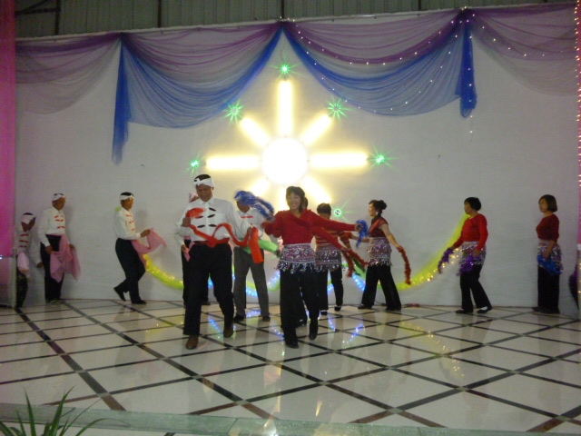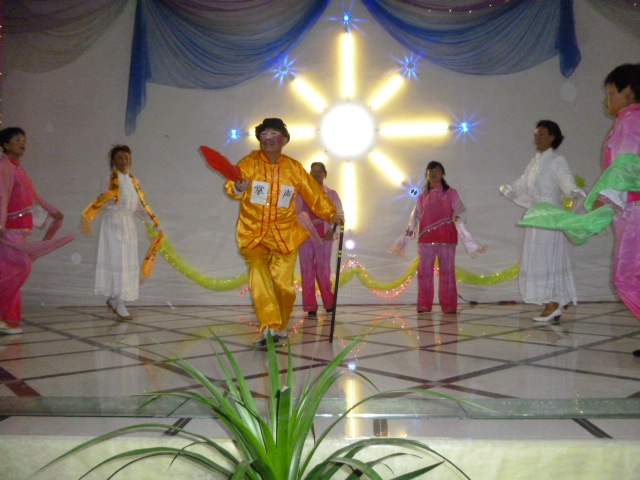 秋高氣爽,精氣瀰漫,秋菊怒放,杜鵑燦爛,四分院迎來了一月一次的文化娛樂晚會,看! 那盡情舞蹈的兄弟姐妹是一株株怒放的生命; 聽! 那美妙歌喉歌唱出的一群群在藍天里飛翔的天鵝仙鶴的鳴曲,這裡是真善美的世界,這裡是天國千年界在人間拷貝的現場,這裡是具有美好心靈的人兒們自由生活的故鄉,這裡是沐浴上帝靈光的神聖殿堂,讓我們盡情歌舞彈唱,奔向美妙的前方。 2012-10-30