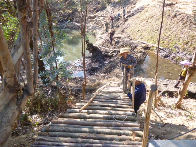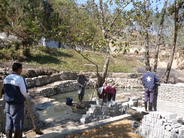 為了實現我們的理想,家園兄弟姐妹們每日勤奮地勞作著,半月塘建設已經進入中期施工階段,山坡上披上了綠油油的青草,從靜月峽向半月塘修建了木製樓梯,鴨舍正在建造中,過段時間,所有路面將鋪上水泥面,近30株垂柳也將落戶半月塘,請欣賞。
