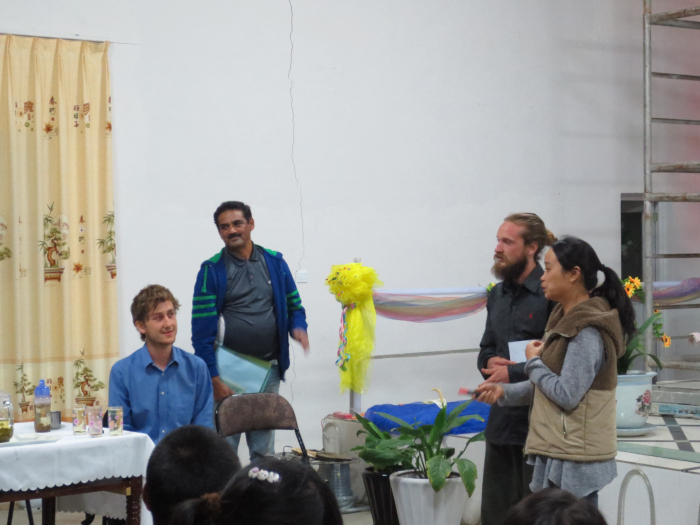 響應中國政府的號召,為了把家園打造成生態文明的典範,第二家園邀請了美國朴門農藝專家Nick先生和比利時生態建設專家Brecht先生及印度朴門農業熱心宣導者Kasen先生前來家園指導工作,經過對三所分院的實地考察和瞭解后,三位先生就如何把家園建設成生態文明典範做了長達50頁的指導性報告, 其中對人工糞便的處理和垃圾的焚燒等問題做了非常具體的建議,下面是他們在四分院作報告的實況拍照,請欣賞。