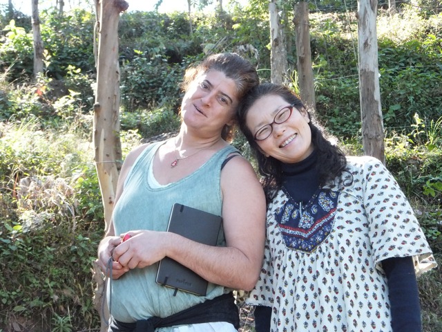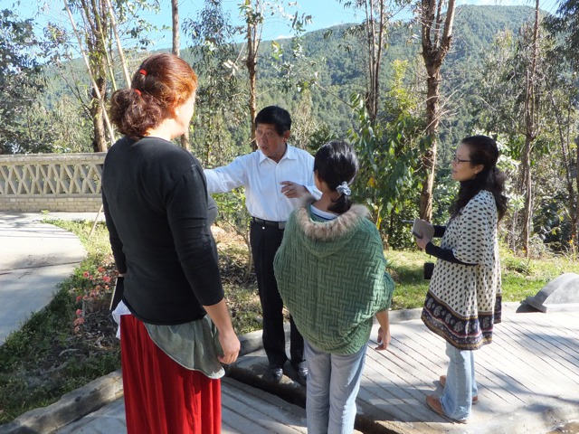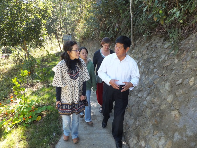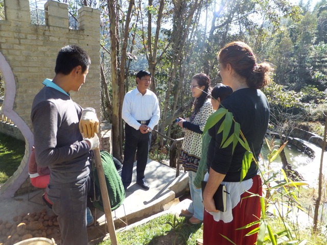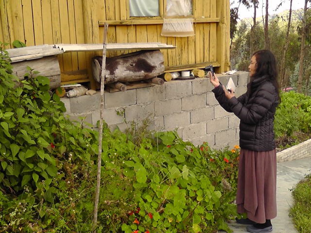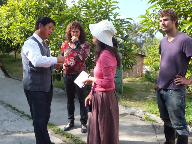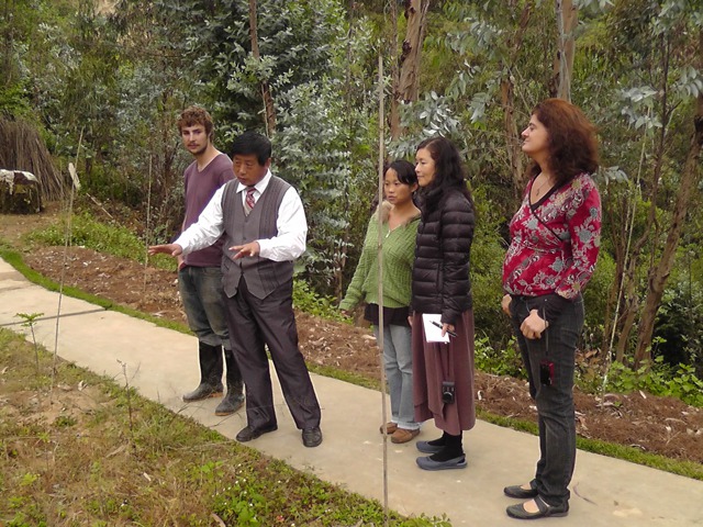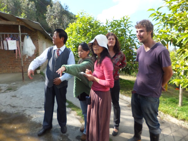 Michiyo到達四分院兩天后,由導遊親自作嚮導,美國姑娘Rikki 和英國小夥Oliver隨行、愛戀和我陪同,一起參觀了四分院。 從天水寨、觀景台到大河川、彩虹坡、鳳鳴嶺、靜月峽、半月塘,從菜地、山坡、山嶺上蔬菜、果樹、花卉的種植,百香果、土豆、蔬菜的計劃安排到雞鴨、魚兒、鳥類的飼養; 從最初四分院的建設規劃構想到孩子的教育實施、家園的整體生產和生活模式構建,導遊都一一做了詳細的介紹。 作為隨行人員也感到非常受益,學習到了很多,尤其是欽佩導遊對家園整體的巨集觀規劃和做事時細緻認真的態度! 發現導遊對四分院的一花一草、一磚一瓦、角角落落都熟悉清楚得很,無一不了然在胸,作為嚮導真是一流的,不愧是我們的「導遊」哦!