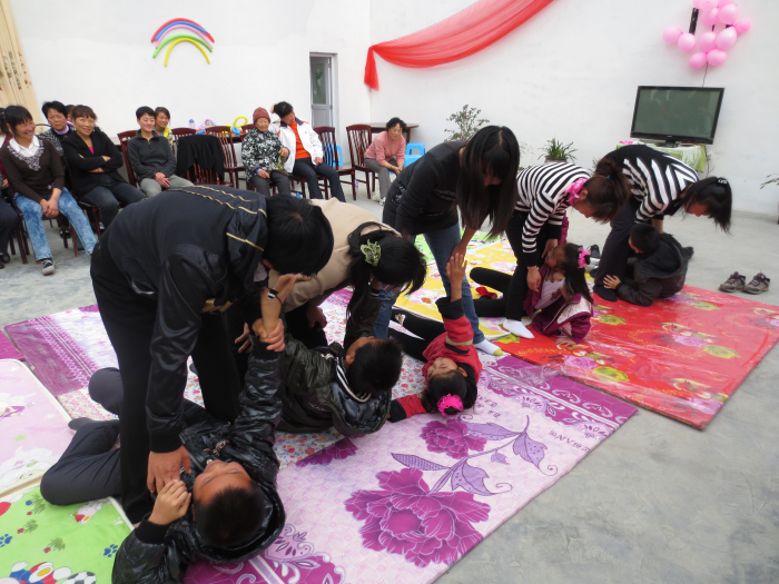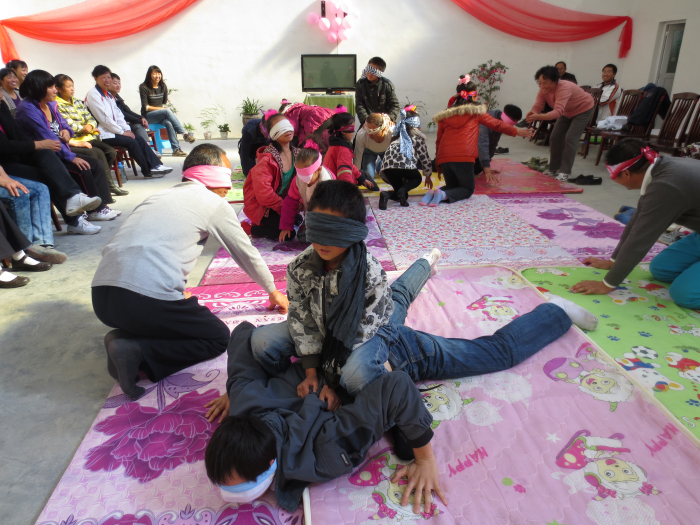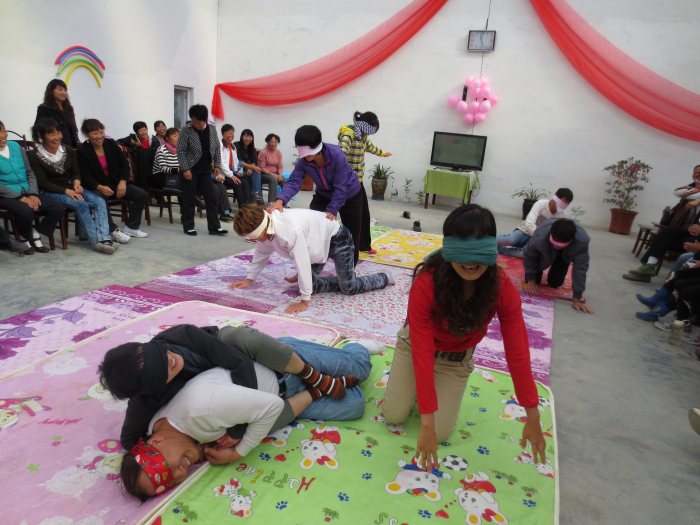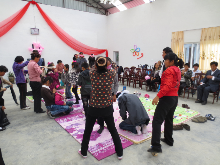 此次遊戲簡單,有踩氣球、老鷹叼小雞、打沙包、蒙眼找馬騎、對對碰淘汰賽、與媽媽搶糖果吃等等。