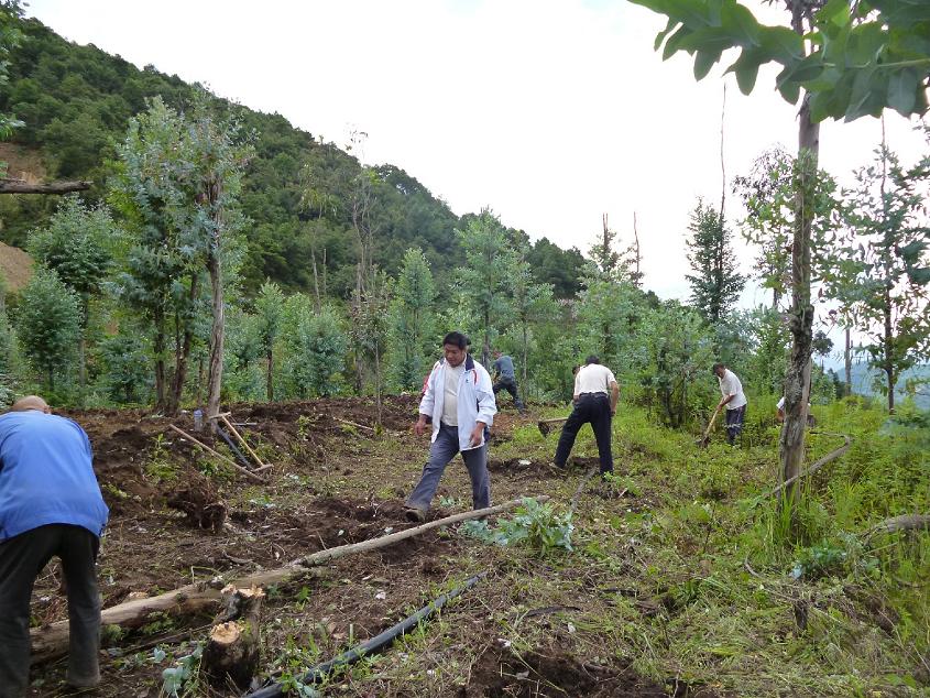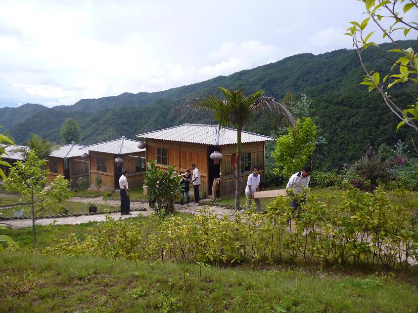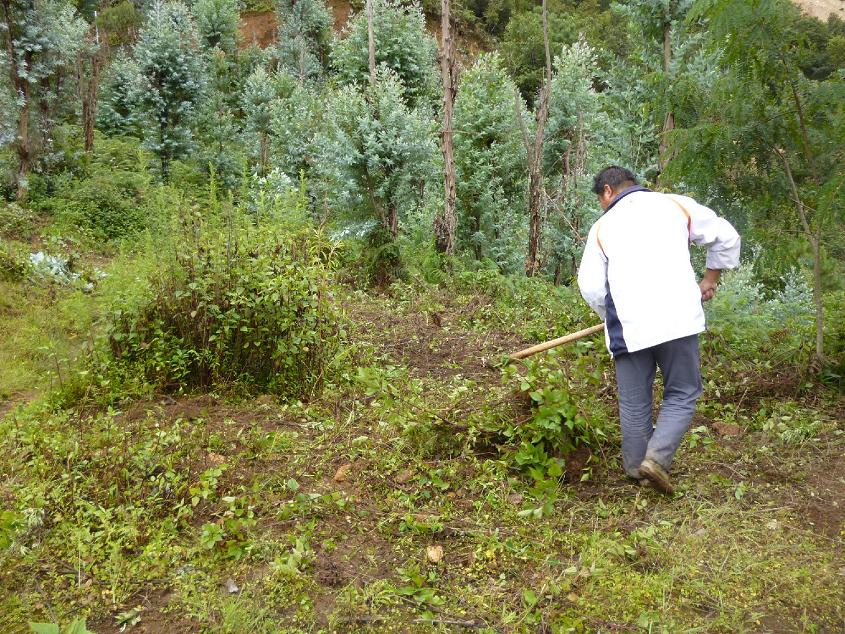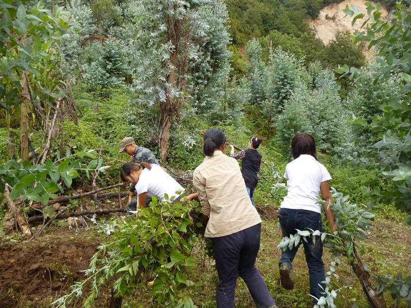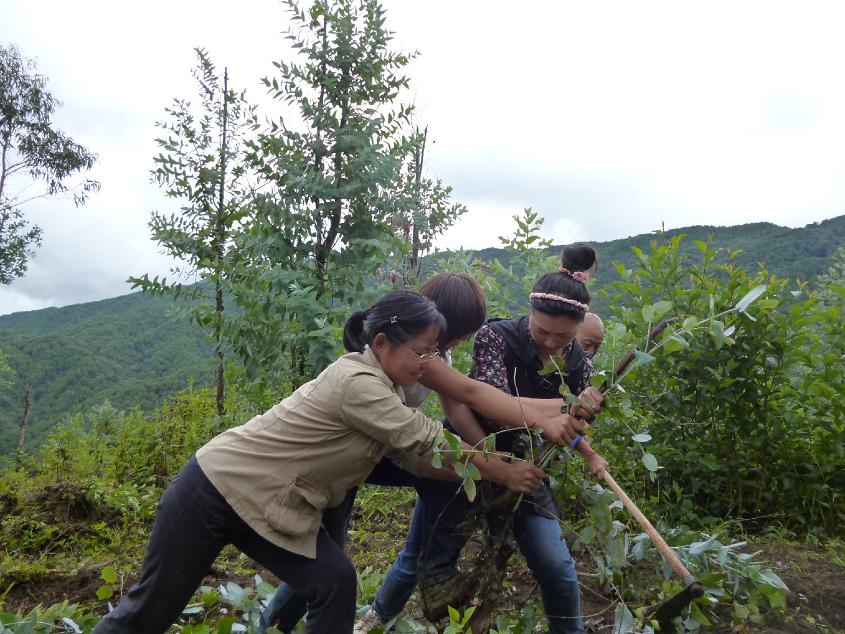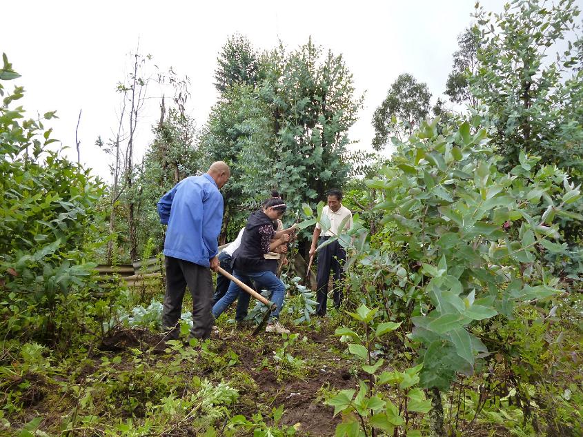 前天我們一行14人乘兩部車從一分院出發歷時九個小時達到四分院,原定的床沒有送到,大家打地鋪,昨天早晨七點大家開始開闢菜地,經過一天的勞動,從樹木很多雜草叢生的地方開闢出一塊菜地,傍晚床送到,靈子、滄海、祥君去採購東西,我今天早晨7:30離開四分院現已返回一分院,請欣賞圖片。