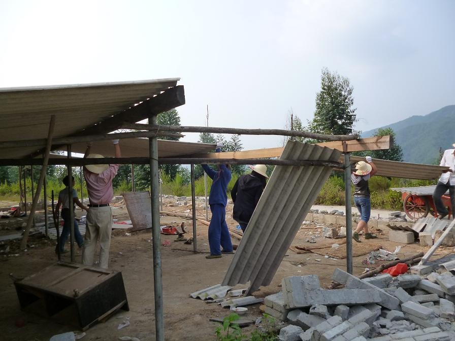 有一間小屋已經成功地變為洗澡間,現在可以洗澡了,但依然不夠,許多親人無法下班后及時洗澡,得排隊排到夜裡11點左右,所以新建一間大的洗澡間,今天已經蓋頂了,相信在10天的時間內,一間寬敞明亮的洗澡間可以用了,再也不用排隊了。