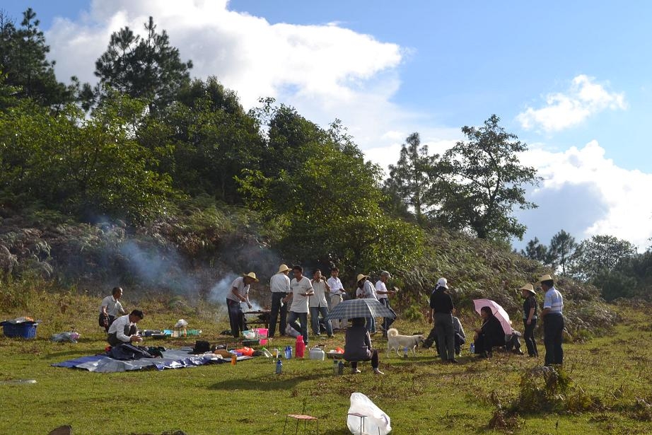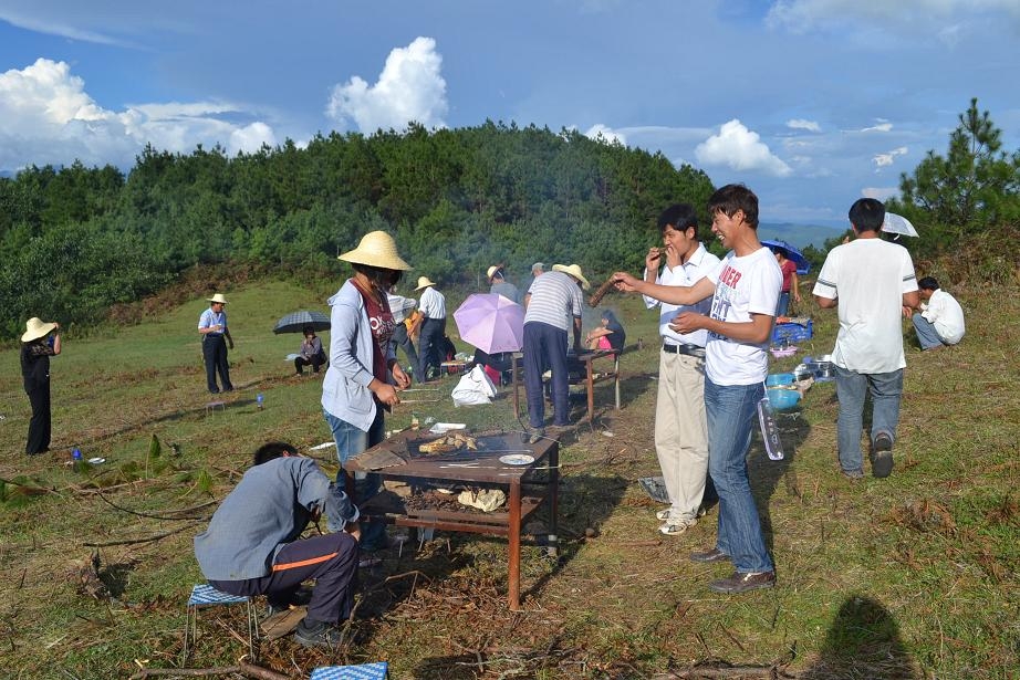 四分院全體開拓者一直以來每日緊張勞動很少休息,昨日我安排了一次消閒活動,在崇山峻嶺中找到了一塊小草原,大家去那兒燒烤休閒一天,請欣賞燒烤部分圖片。