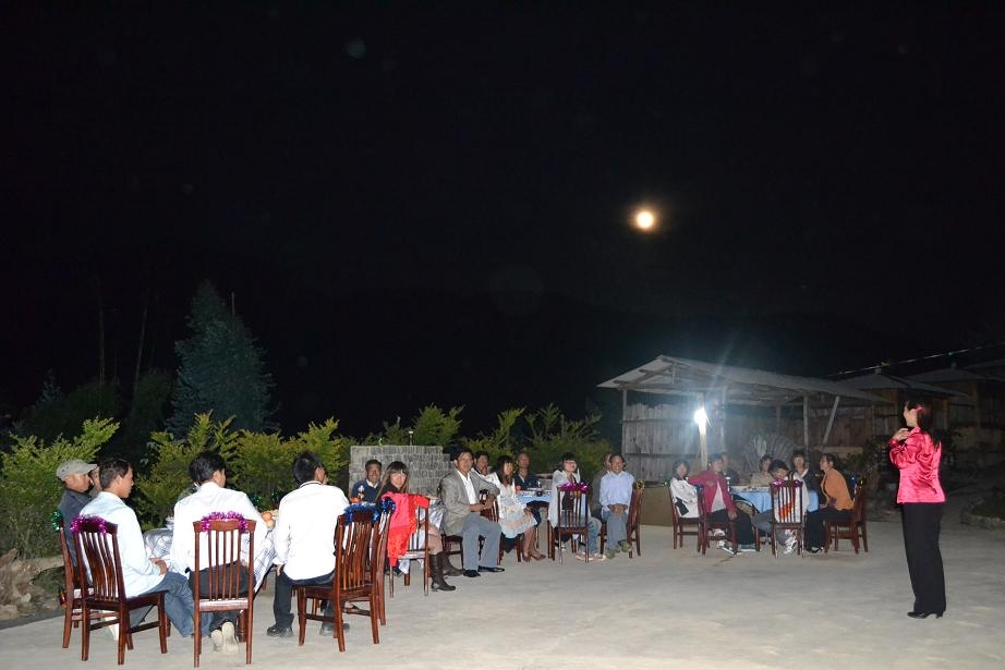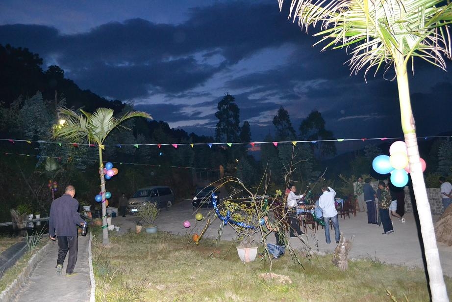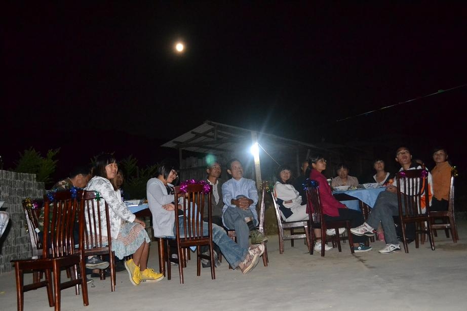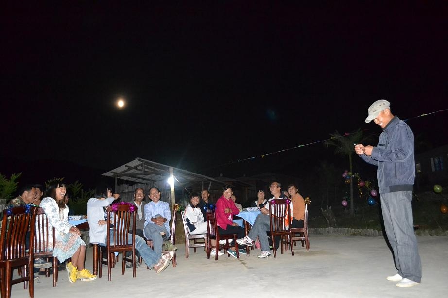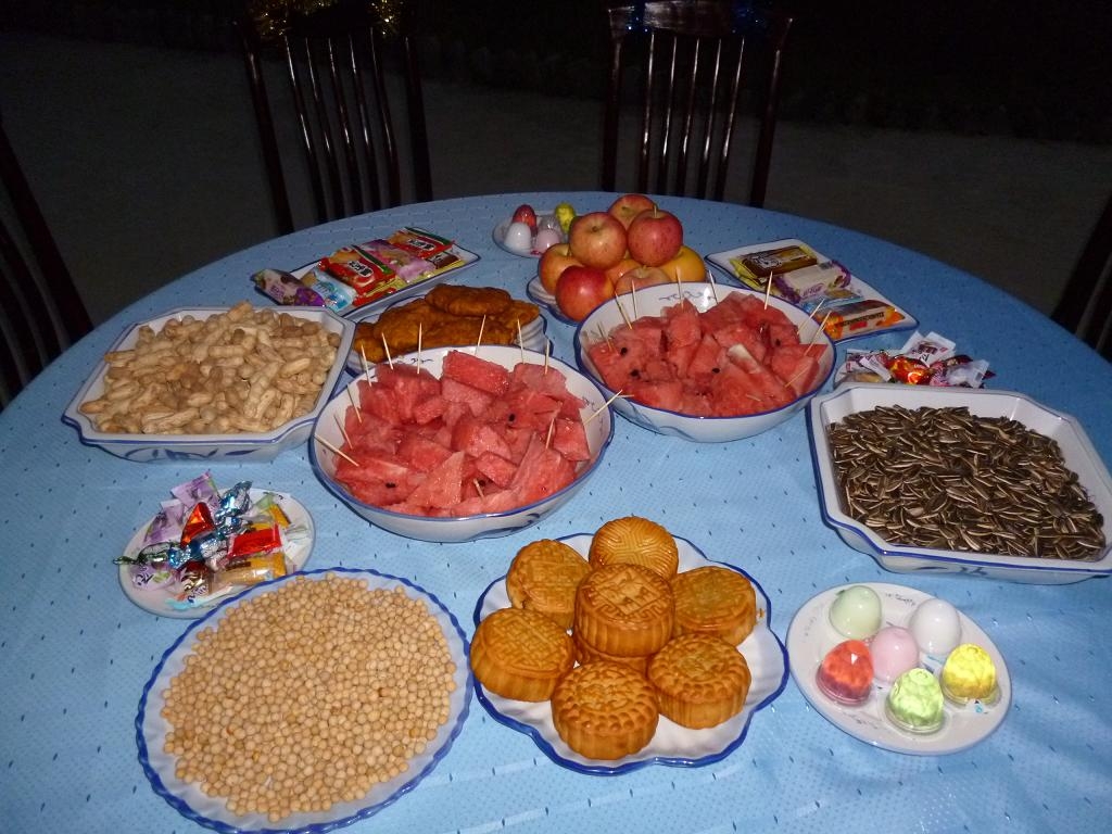 在這美麗的青山環抱綠水潺潺中,四分院仙人們共度良辰美景,一輪明月升上山巒,仙人們齊聚庭院,桌上擺滿了月餅、西瓜、蘋果、花生、糖果、餅乾、油炸餅、薯條、果凍、瓜子、黃豆,用歌聲、笑聲、舞蹈、器樂感恩佛祖上帝,盡享人生和生命的樂趣,啊! 在上帝的王國——我們可愛的第二家園,一切呈現著吉祥溫馨,我們的生活是多麼美好,寧靜、優雅、清麗、和諧,人間仙境在家園,美好人生恰此時。