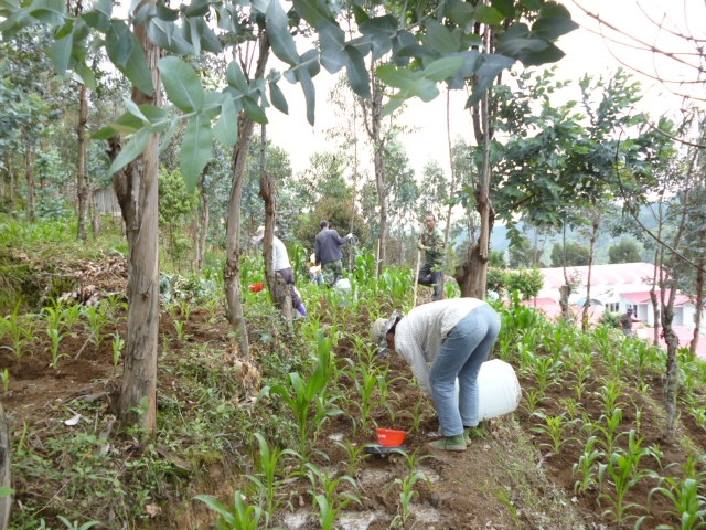 四分院的土地都是貧瘠的沙土地,今年我們種了土豆和玉米,我們堅決實行朴門農藝生態種植,絕不用化肥,所以用漚肥和農家肥,前些天給土豆施肥,今天星期天,給玉米追肥,雖然玉米長勢不是很好,但我們要努力使其生長,請看給玉米追肥的一些圖片。
