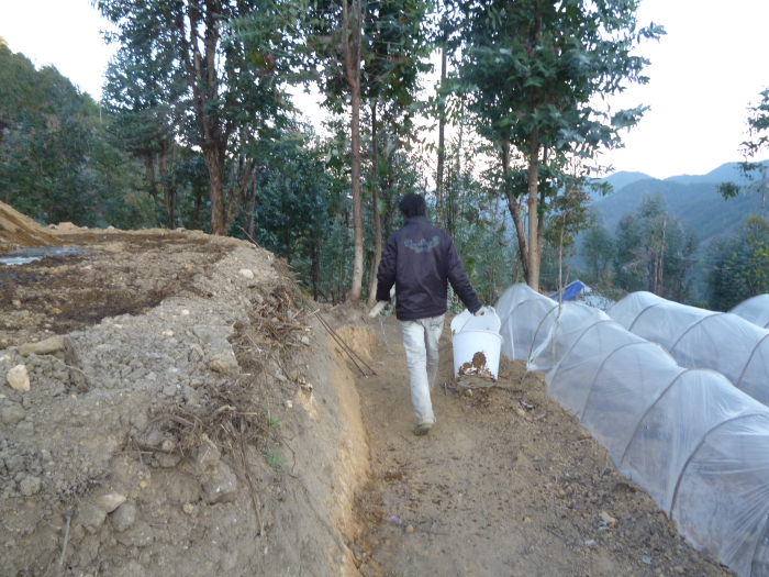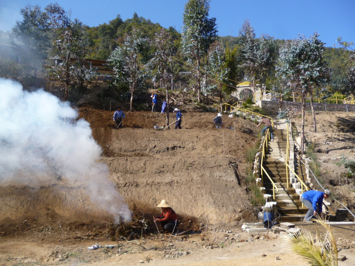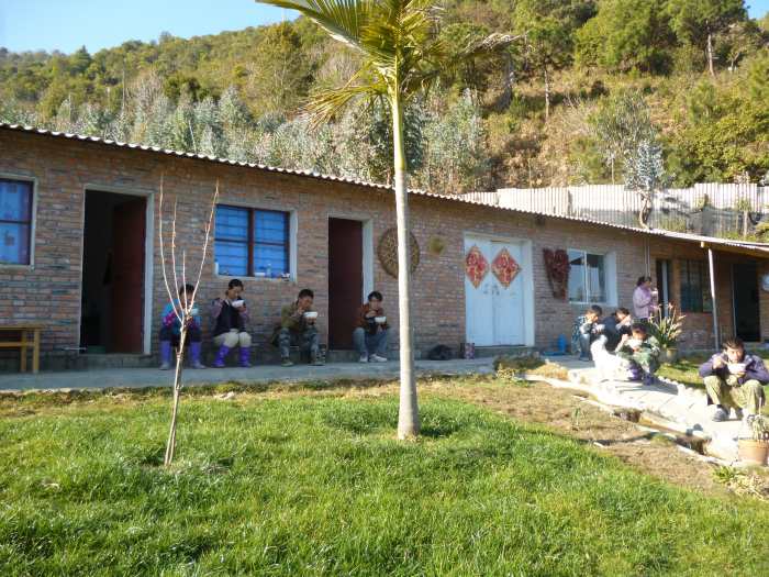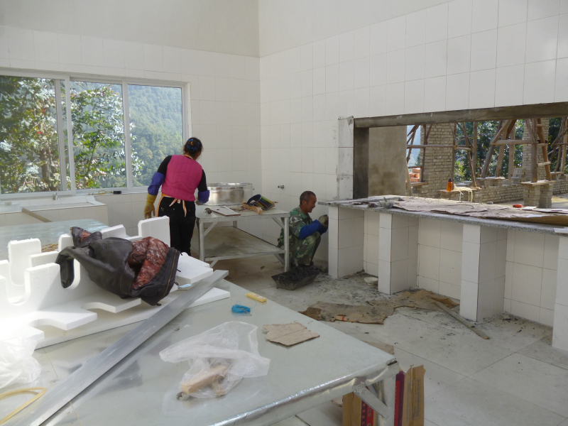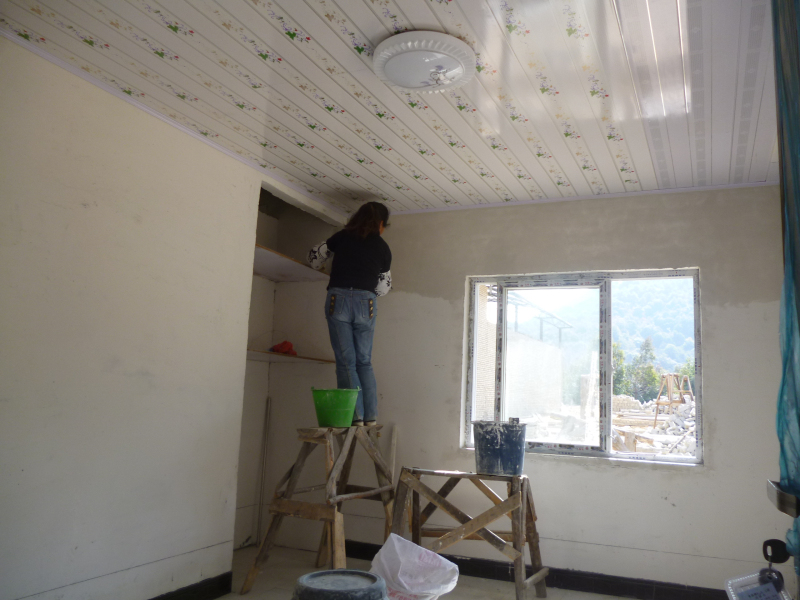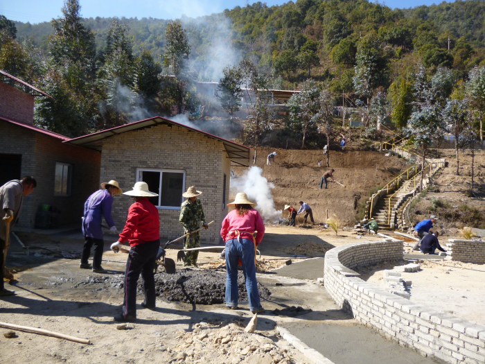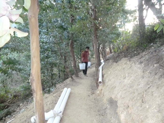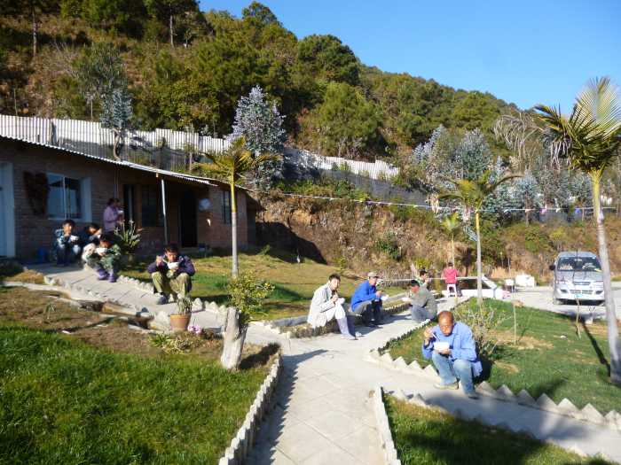優美的旋律在山谷中迴旋,在青山綠水中柔美地滑動,在庭院臥室中往返,我的臥室在大河川中央,前後都是大玻璃窗,此刻我面對著青山,陽光溫暖地從窗戶射進照在我的電腦上,辦公桌正中是電腦,左手邊是一台大的地球儀和顯示日期和溫度的臺式儀器,右手邊是一杯清茶,透過窗戶,我看見山寶、神祖、德欽、甜柔在開闢菜園,再朝左,是魔愁、元初、勃機、 佛土在挑糞,還有照藏、樂仙、覓蹤等拉土填坑,從另一個窗戶望去,神功、知君、本真、淩霄、志空、法恩、香貞、雅儀、順境、太極、急流在刨地挖坑準備栽樹種花種草,再遠點,可以看到奧頓、志渝、雅倩在修建一道葫蘆門,往左看去,可以看到源智、婉曲、人祖、尚聖在小道上鋪瓷磚,娥皇在小道上鋪磚設計圖案,再往遠望去, 能看到天友和佛義站在高高的腳手架上焊接大廳旁邊的電腦房頂架,穿過大廳,能看到嬌虹在粉刷新建的兩間臥室,玄德在安裝燈架,濤瀾和丹彤在安裝門窗,向左拐個彎,就能看到祥君、物華、神音、細卓在餐廳貼牆磚,時不時地能看到至徹和瓊瑤在清掃垃圾,抬頭往上看,看到歡心在山坡上給家園去年移植的果樹澆水,看到窈冥、瓊皇、億命在菜地里拔白菜,還有誰呢? 噢! 定海在劈柴,寶娟在洗衣服,天寶和照禪在挖石頭,神慈在燒開水,慈恩和靈子早早地出門去採購,最近幾天有時候每天要出去三趟,往返在雙程30多公里的山道上。
