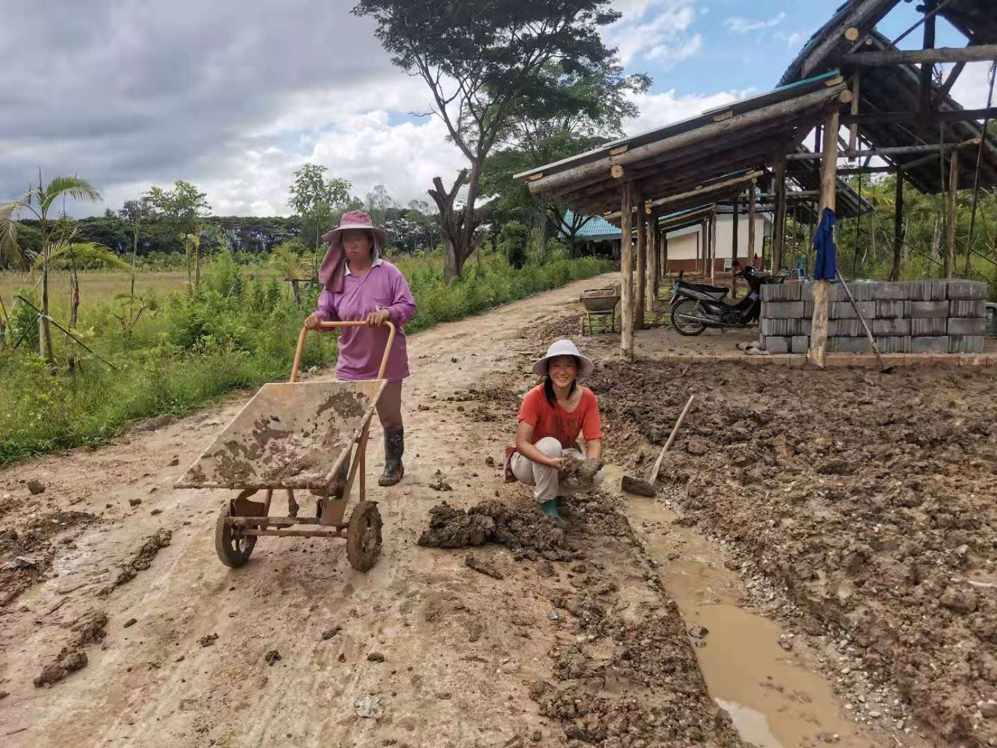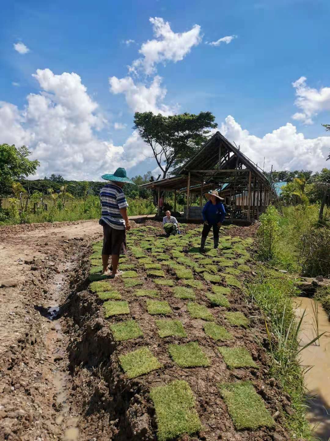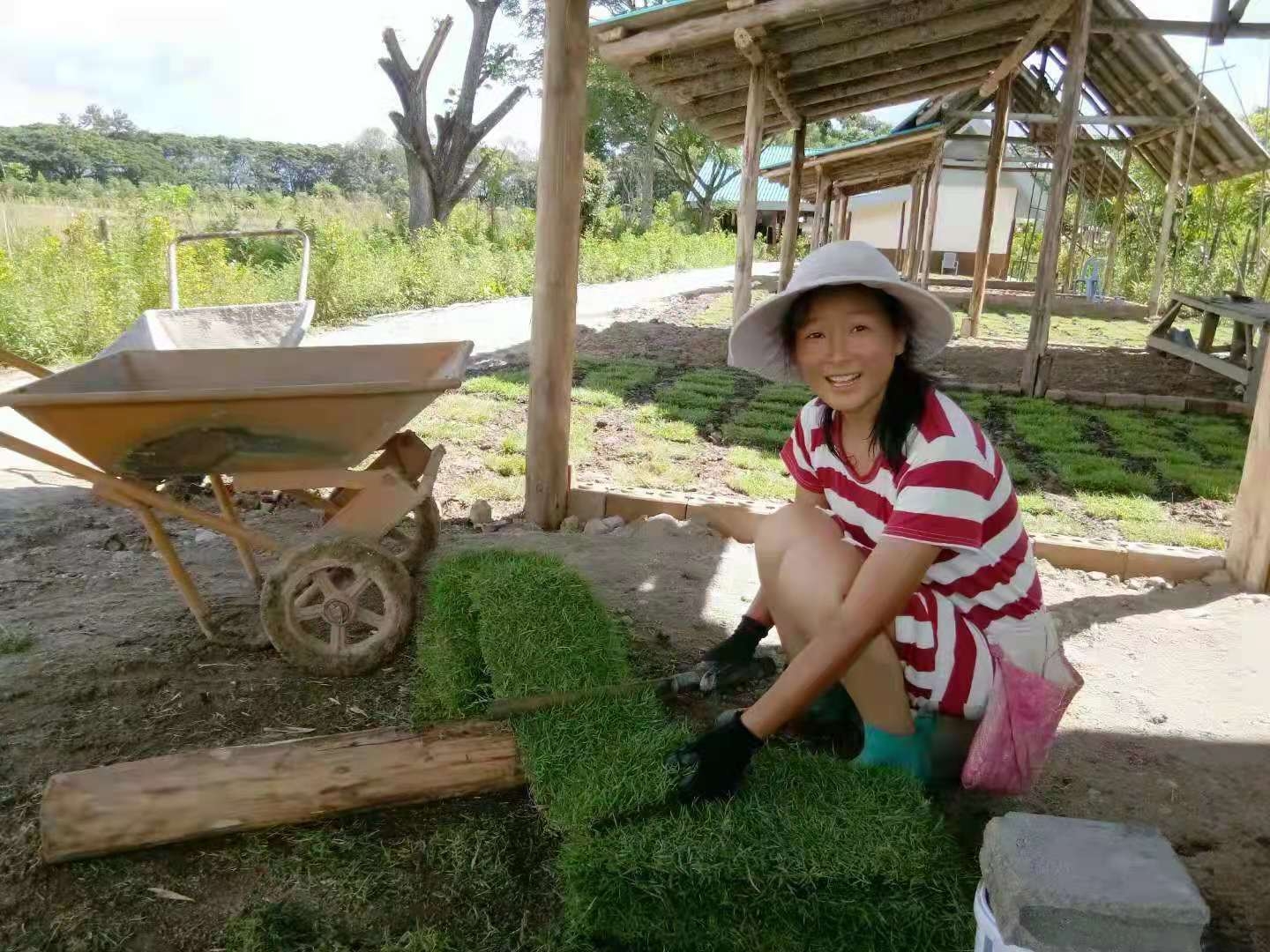 龍炮讓工人們建設的兩層閣樓接近完工,我們説明Pi露和大哥在周邊以及院子其他地方鋪草坪。 又有機會體驗到中午太陽能持續快充的感受了,天氣太熱大哥幹活慢悠悠,還告訴我們也不要太使勁。 可是大太陽底下磨洋工感覺更燥更沒勁! 禪院草懸崖上都能跳探戈,乾脆把自己豁出去,什麼都不想不在乎,把注意力專注在鋤頭刨下去的每一下,陽光火辣辣地曬在臉上和背部,想像自己正在被愛包圍著和融化著。 如此這樣,反而對太陽高能量適應了,不再抗拒了,大汗淋漓,一股涼風吹來,覺得特爽特帶勁!