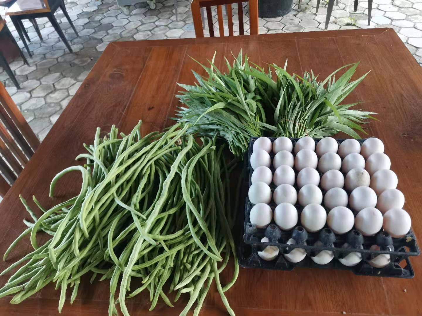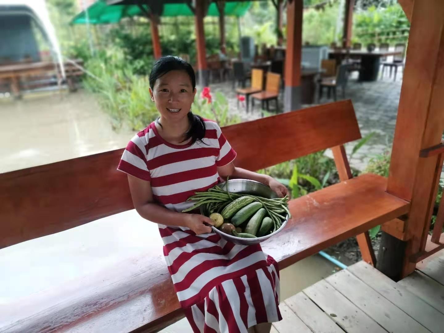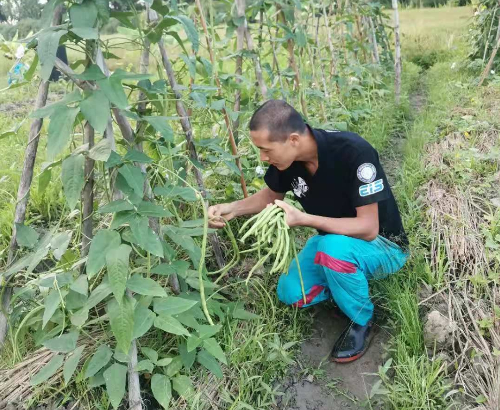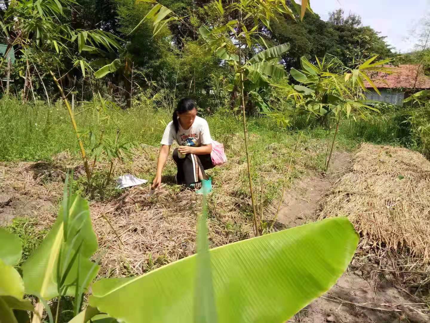 現在我們管理的菜地,廚房前有20小塊,前段時間經改良后,種了鋸齒青菜,蒜,包包菜,矮桿豆角,木耳菜,移栽了芋頭,韭菜,茴香,芹菜,美國菠菜,還有一塊地上是去年籽播的草莓正在蔓延。 廚房後面,經除草起隴後每塊菜地大概寬1.5米,長10米,一共20多塊,種有小青菜,雞蛋茄子,紫茄子,冬瓜,空心菜,西紅柿,豆角,黃瓜,絲瓜,泰瓜,西瓜,辣椒,玉米等。 除了近處的菜地,遠處經龍龍割過草的地方,仰樂就地摟草,在草窩窩裡種了南瓜籽。 現在豆角,黃瓜,青菜,空心菜,茴香等可以採摘了,尤其是豆角和黃瓜每隔一兩天就能摘一大抱送給龍炮。