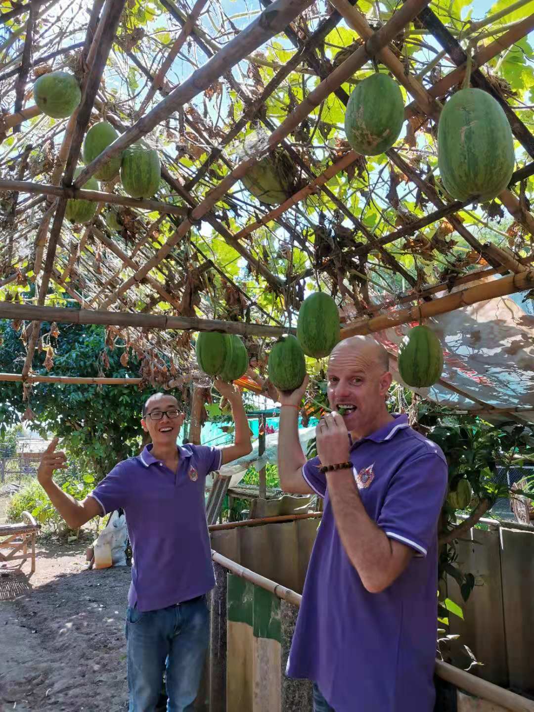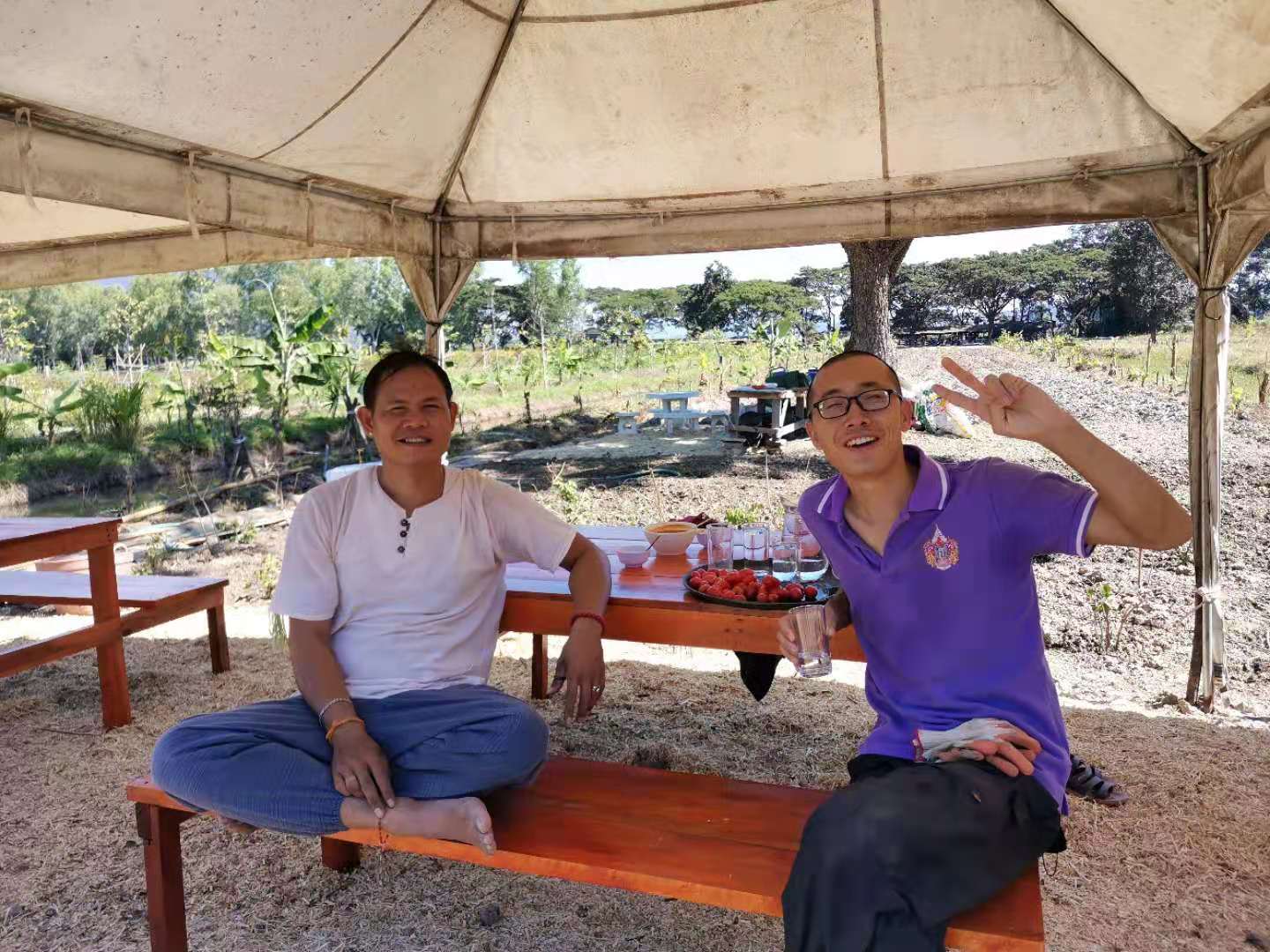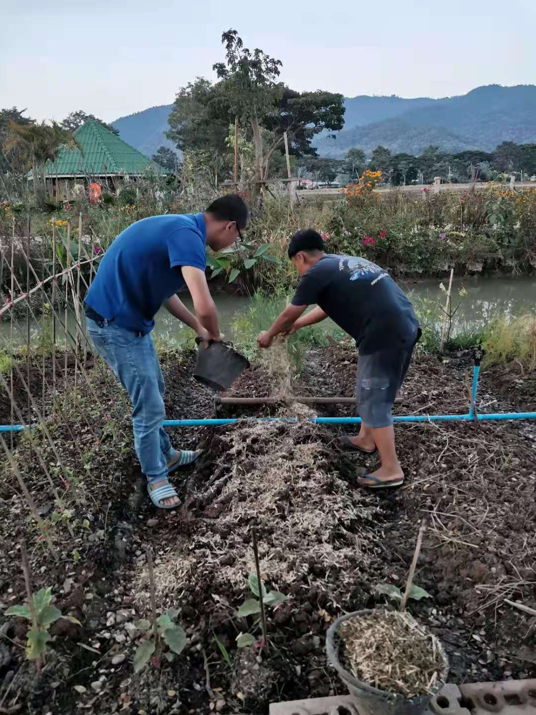 主持還是一如既往的喜歡看我們幹活,不管是在餐廳里,或者育苗室,還是田野河邊,也不管是自發的做些什麼,還是跟大衛或是其他工人們一起做活,主持都很歡喜。 特別是一早一晚,有時,他可能會專門驅車從那裡轉幾個圈,並跟我們鳴個笛,或停下來給點個讚,或是有意無意地下車來,在我們附近轉悠轉悠。 前些天他還特意囑咐了那個會說泰語的中國哥,給我們當翻譯,以便我們能更好地與其他的菜地組兄弟姐妹們一起工作和交流。 有時候,他還會專門誇我們兩個工作做得好,並感謝我們。 有時他出去採購,還會特意給我們幾個買些麵食小吃回來,看到我們喜歡吃,他也非常開心。