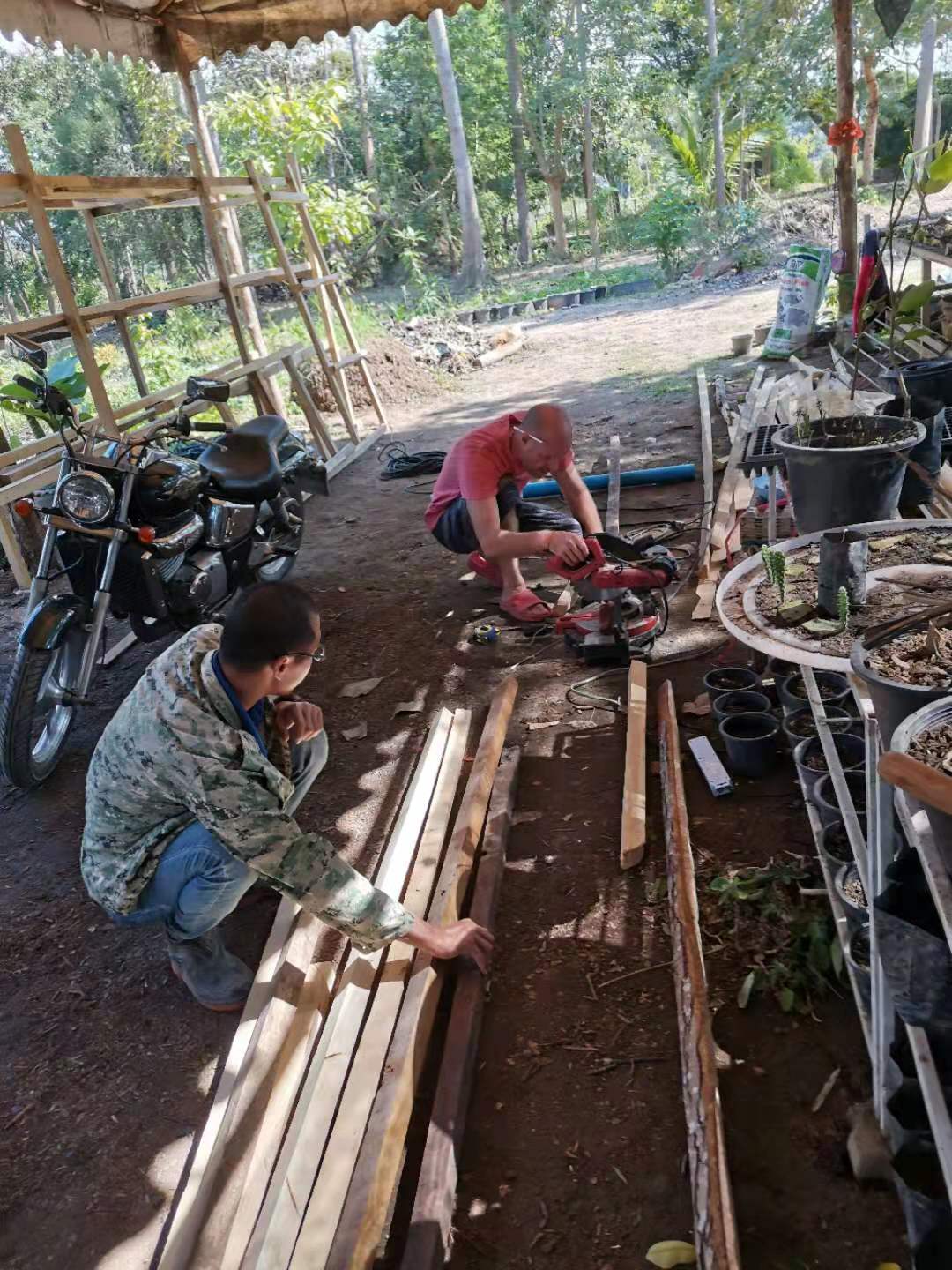 其實David和Noi之前在其他社區做志願者時,就有過帶其他志願者的經驗,也經常被志願者們喚作爸爸和媽媽。 目前,我們幾個已經商量確定了每天的固定日程安排,早晚定點兩頓飯,避開中午最熱時段,每天最低工作時間六小時。 並且也明晰了現階段大家共同的主要事務:育苗室整修和制肥育苗。 每天有集體勞動,也有自主規劃。 現在David除了繼續通過語音文字宣傳這個地方,也開始有意識地著手拍攝一些工作場景和視頻,更生動清晰的通過各種管道向全世界展示這裡,並吸引志願者的合力融入。