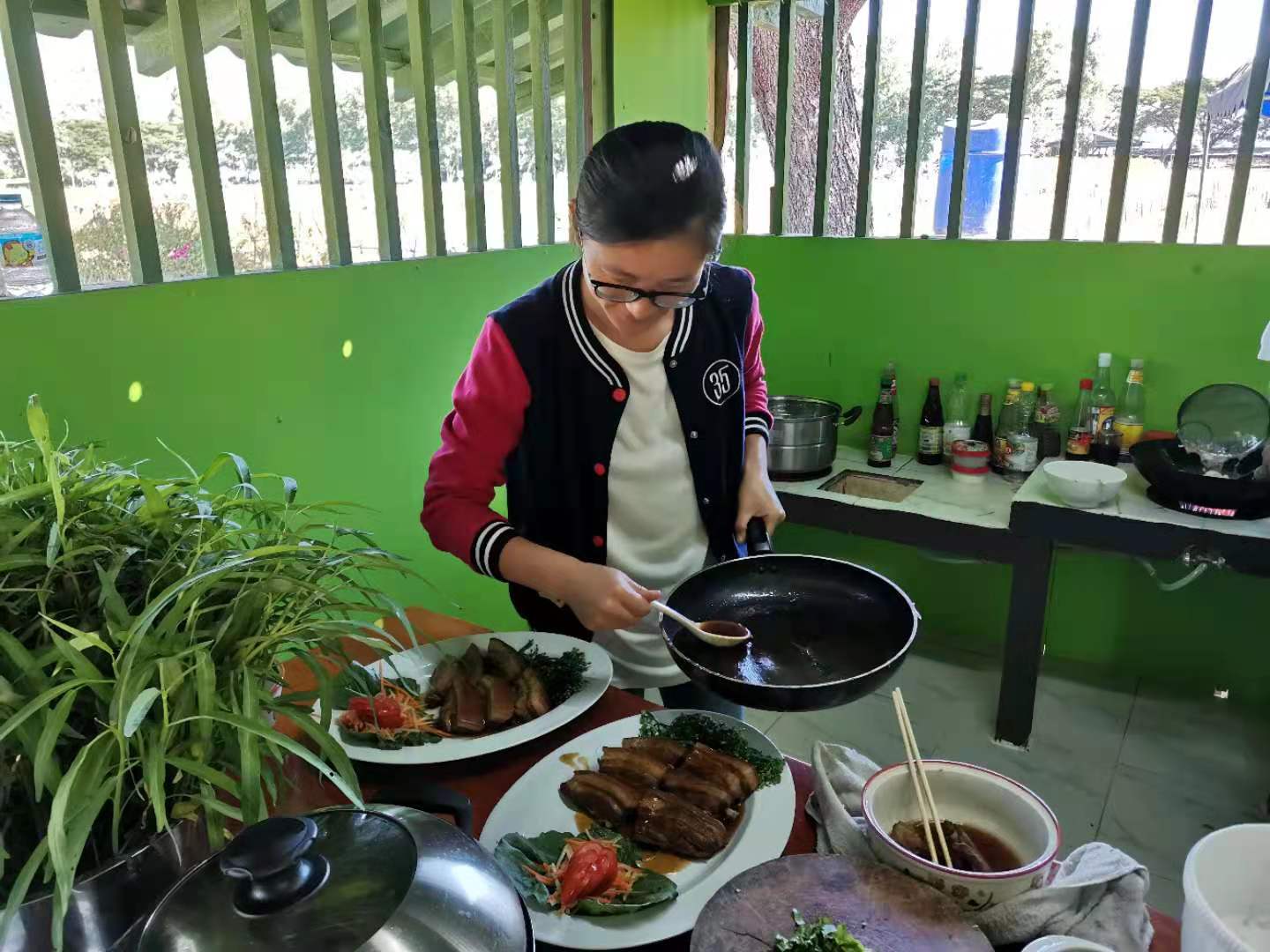 最近,主持說已經嘗過了Noi和David的做的飯菜了,提出要嘗嘗千姿的手藝。 主持嘗過千姿連夜查閱資料,並親自外出採購回來,精心準備的“東坡肉”後,表示很是喜歡。 隨後,在宴請客人時,又點給了客人,並特別說明是千姿準備的“中國菜”。 平時,我們為客人服務時,主持若是在場的話,也會自豪地告訴客人,這,這,是“中國人”。 客人往往也會熱情的用泰語、英語、或漢語,詢問我們的情況。 發現泰國會說漢語的人不少,說得好的人確還未多見。