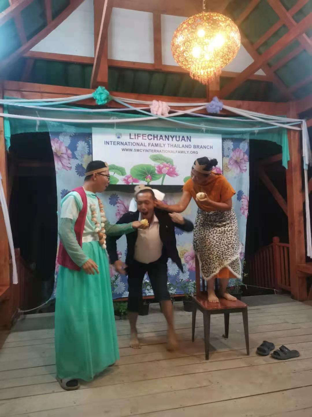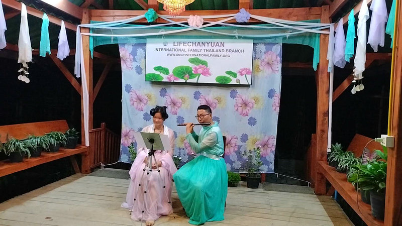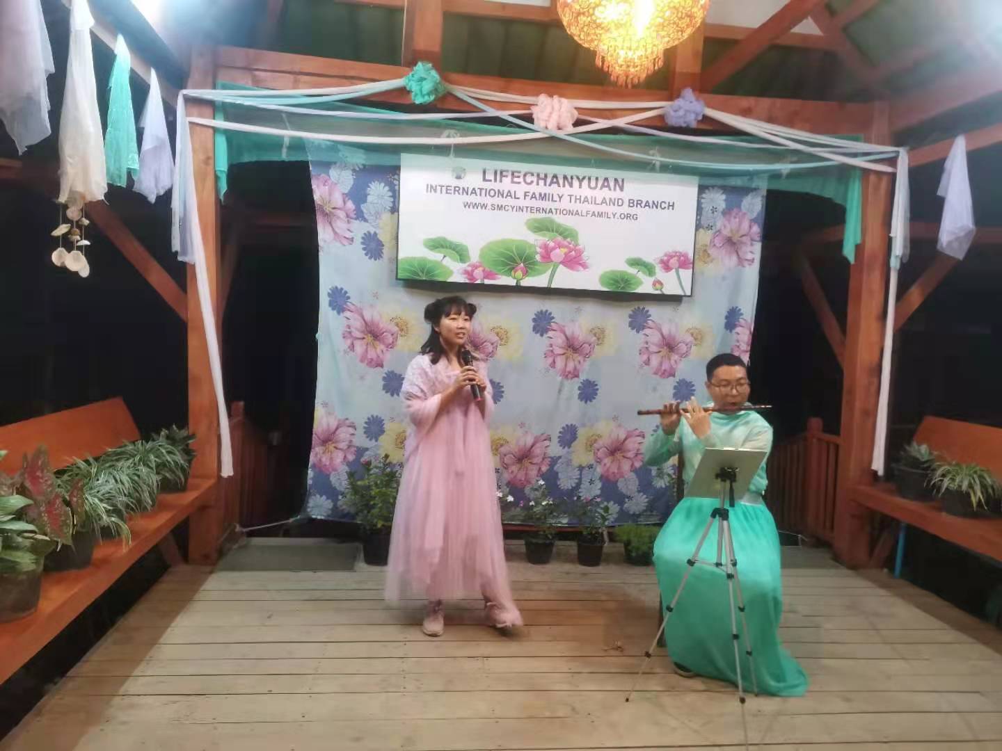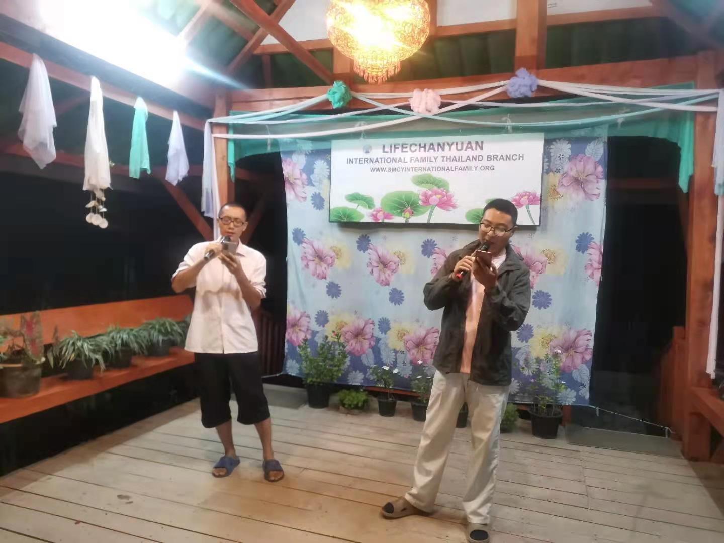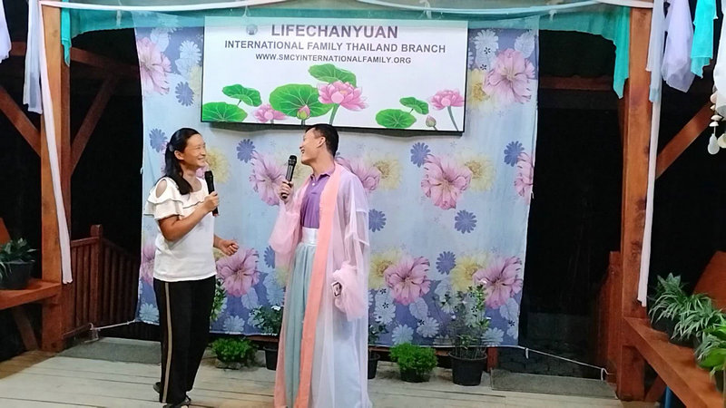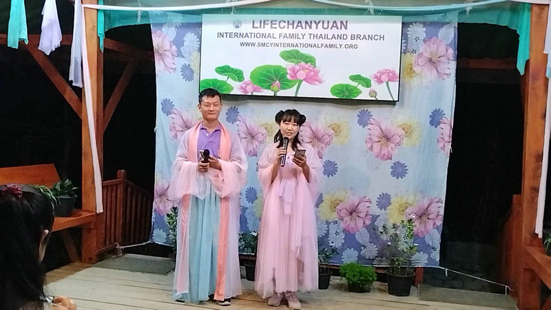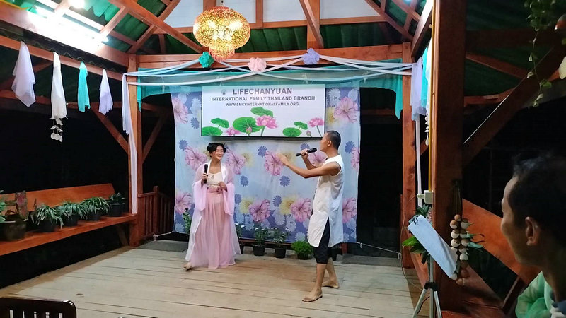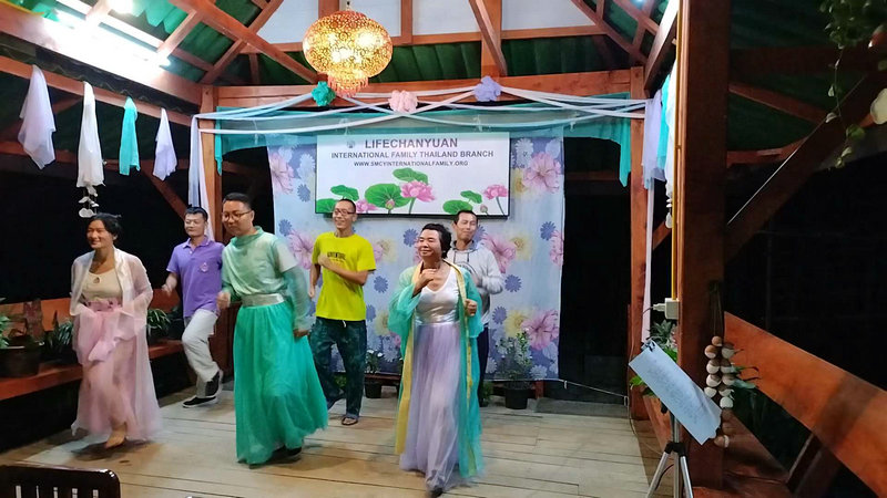 為了歡送輝一,泰國家園於11月6日晚開辦了一場久違的家園歌舞晚會,晚會由仰樂籌劃,歡心輝一雙語主持,歡心仰樂慧光佈置舞臺,玉林設計製作演出服裝,兼化妝髮型師,慧光製作道具,兼音響師。 雖然人不多,大家在日常工作之餘為這場晚會準備著,積極地獻智獻力,每一位都綻放了迷人的風采和藝術才華,尤其是玉林,感謝她為了給大家趕製衣服,廢寢忘食夜以繼日的付出奉獻。